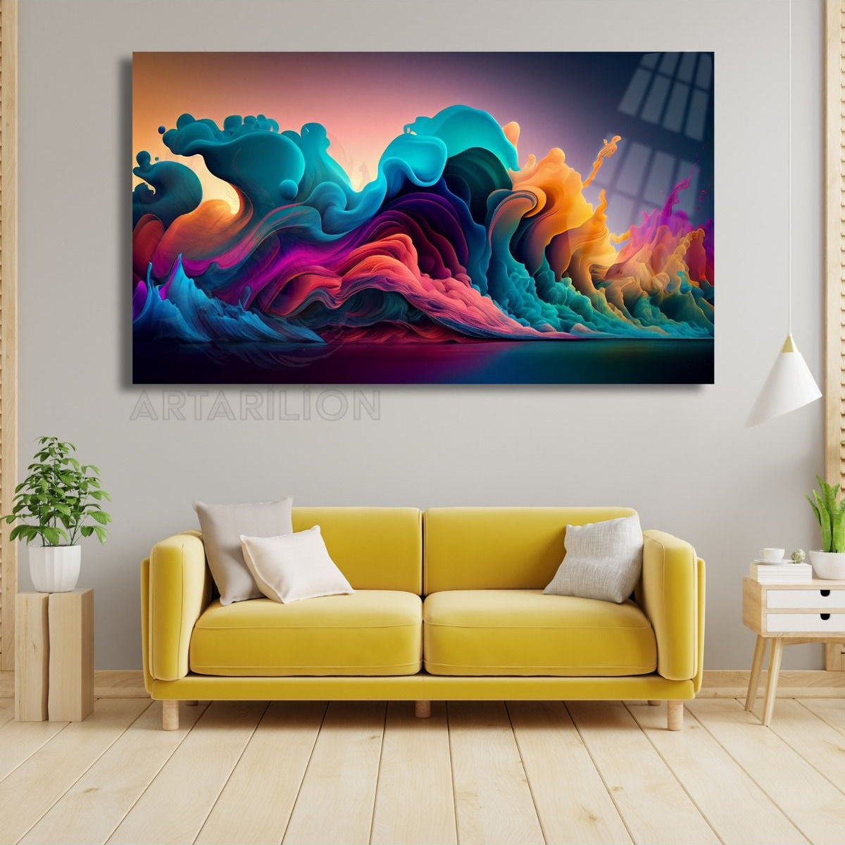 Unbreakable Glass Painting Abstract Neon Colored Smoke Visual Living Room Painting Model Gaming Room Decor