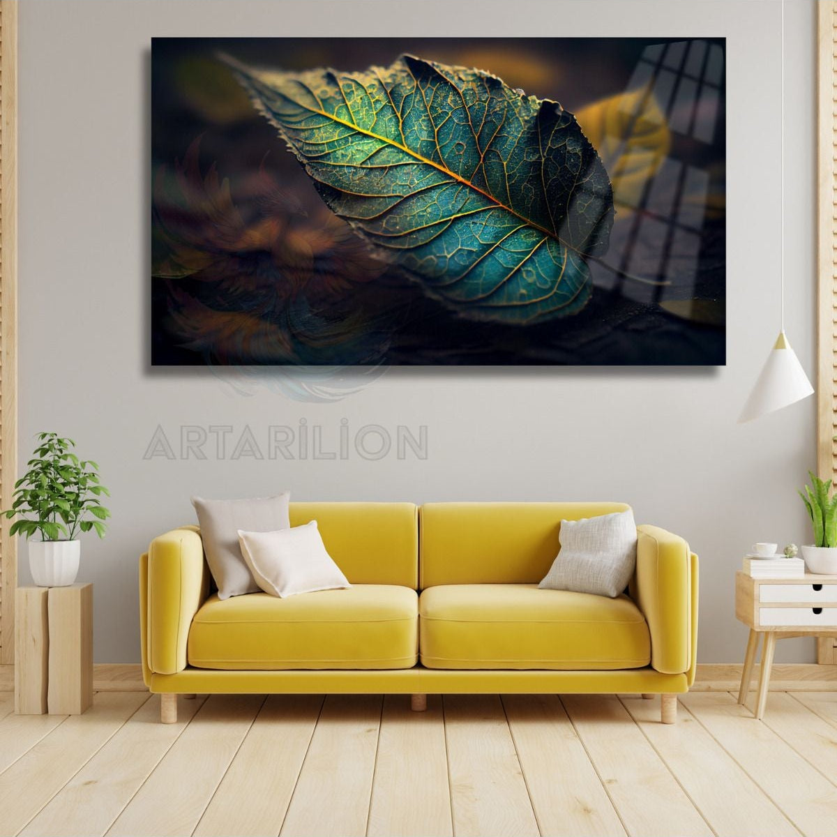 Leaf Detailed Unbreakable Glass Painting Plant Themed High Quality Printed Painting Home New Home Gift