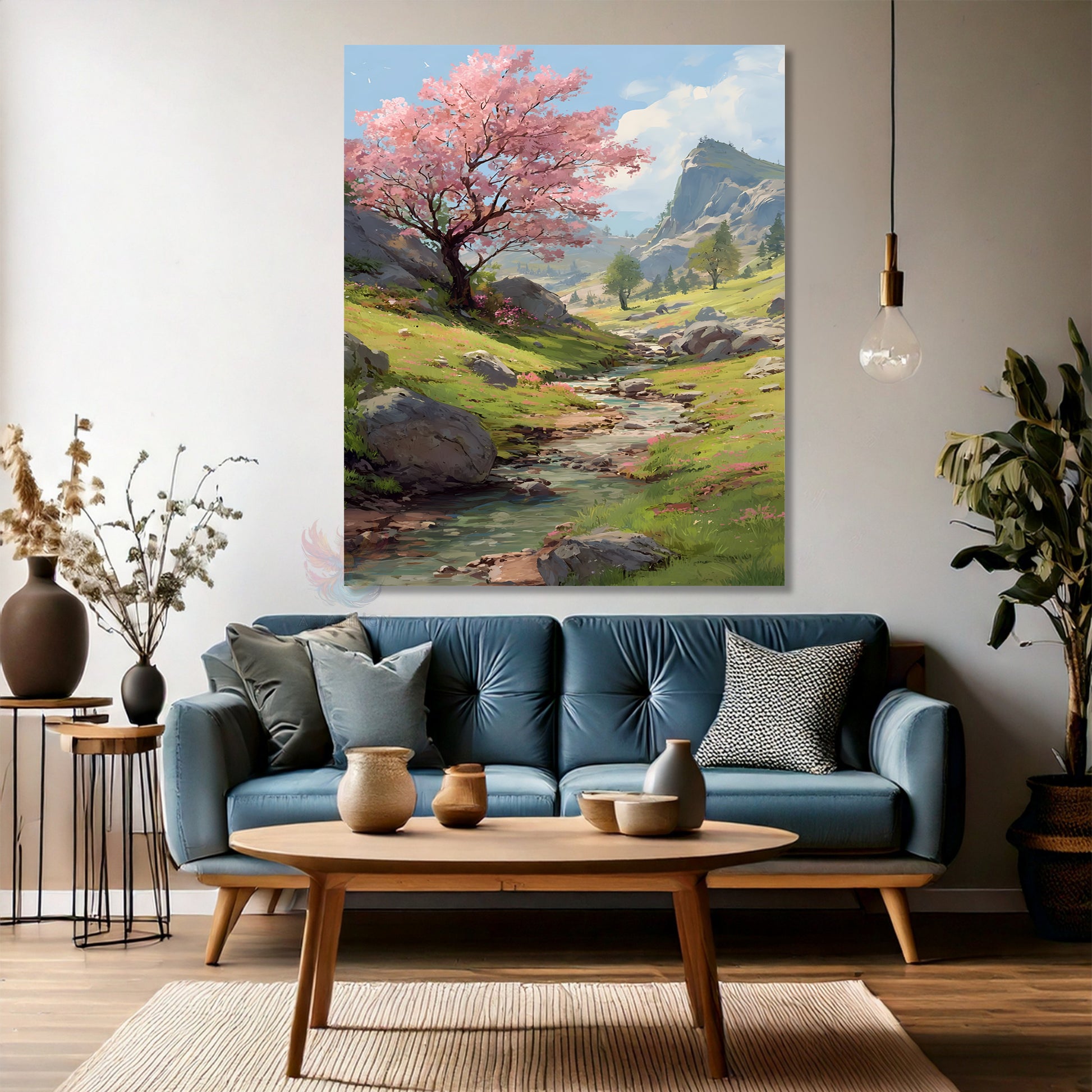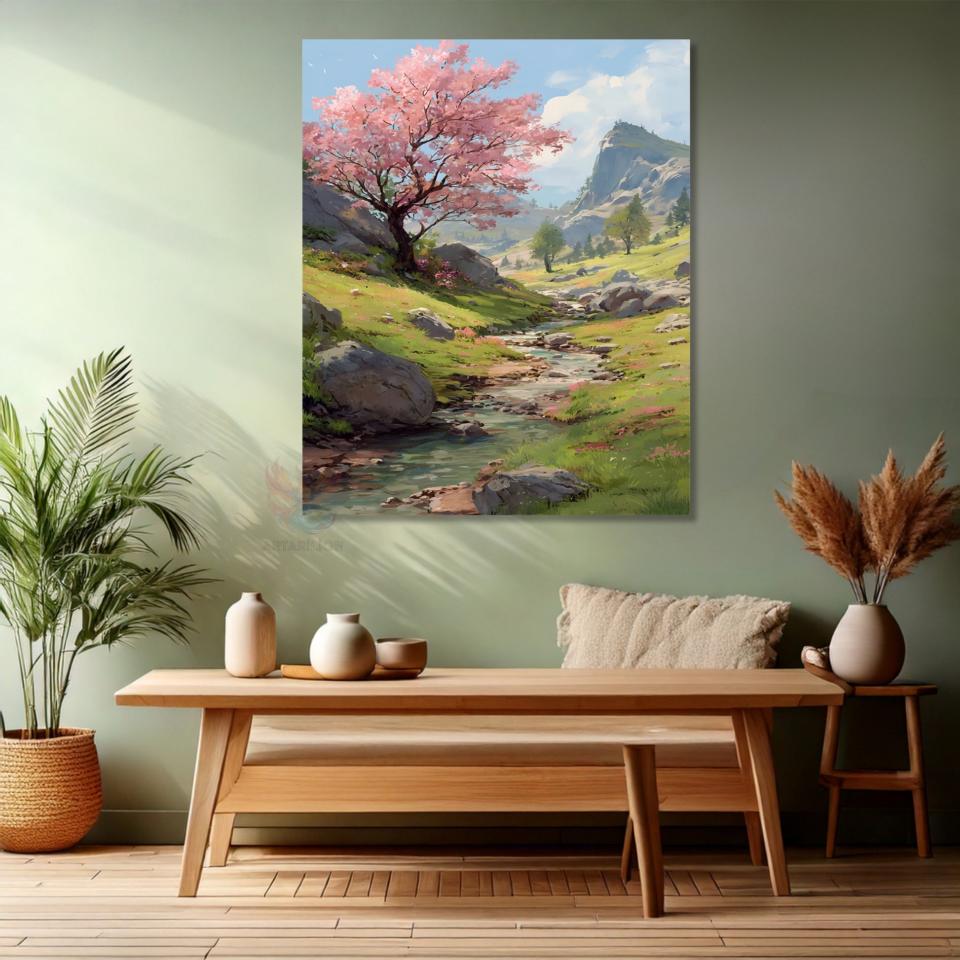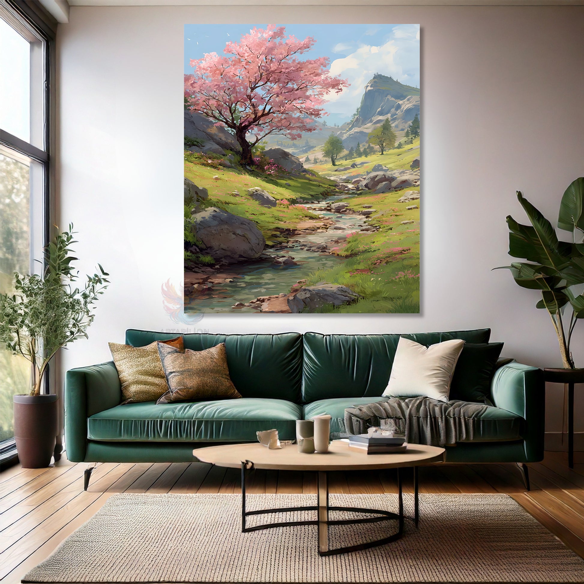 Kanvas Dikey Duvar Tablosu Kanvas Akarsu Dağ Ev Ofis Salon Modern Duvar Tablosu