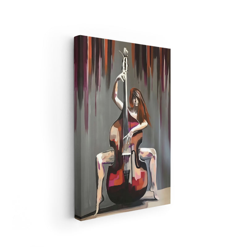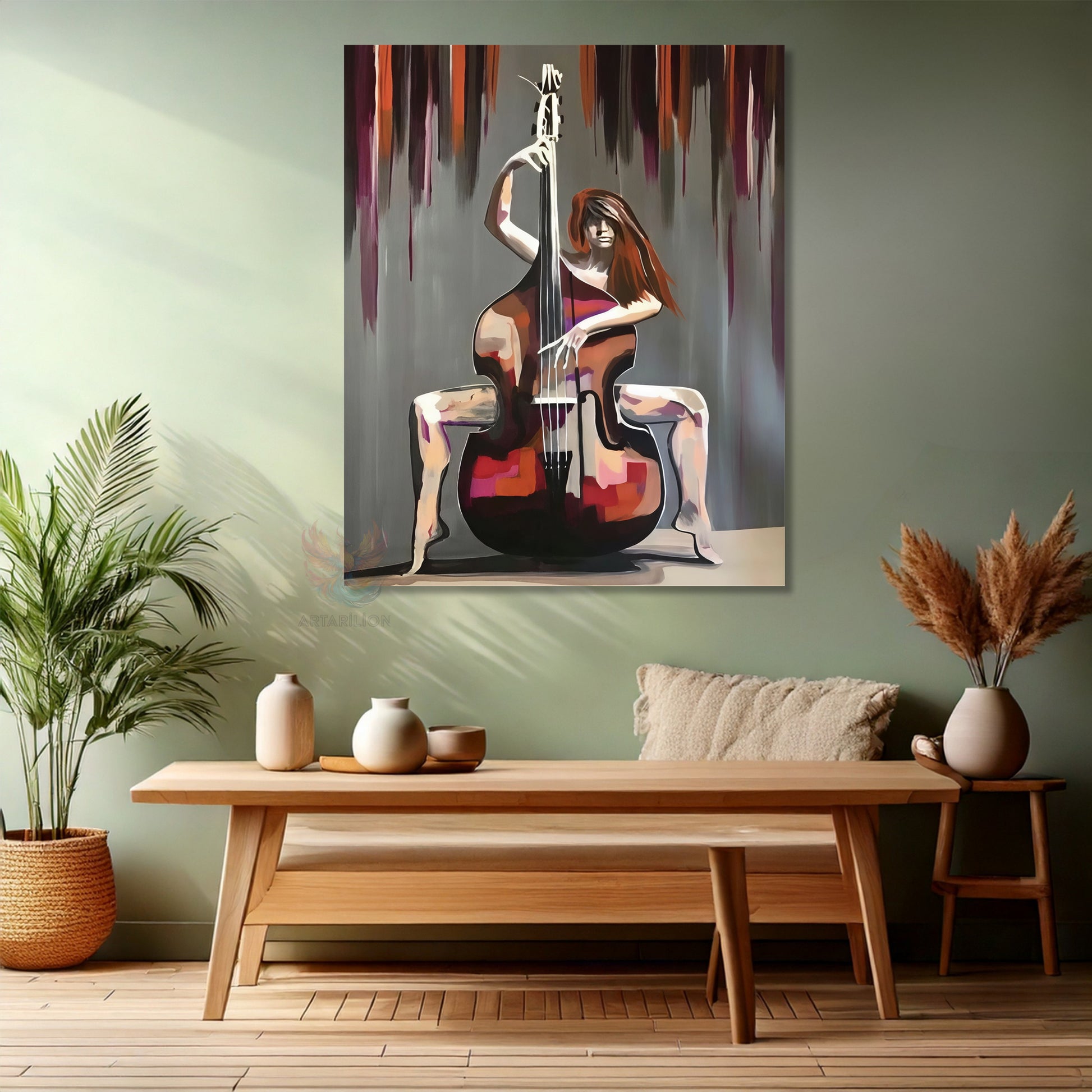 Kanvas Dikey Duvar Tablosu Kanvas Cello Çalan Kadın Ev Ofis Salon Modern Duvar Tablosu
