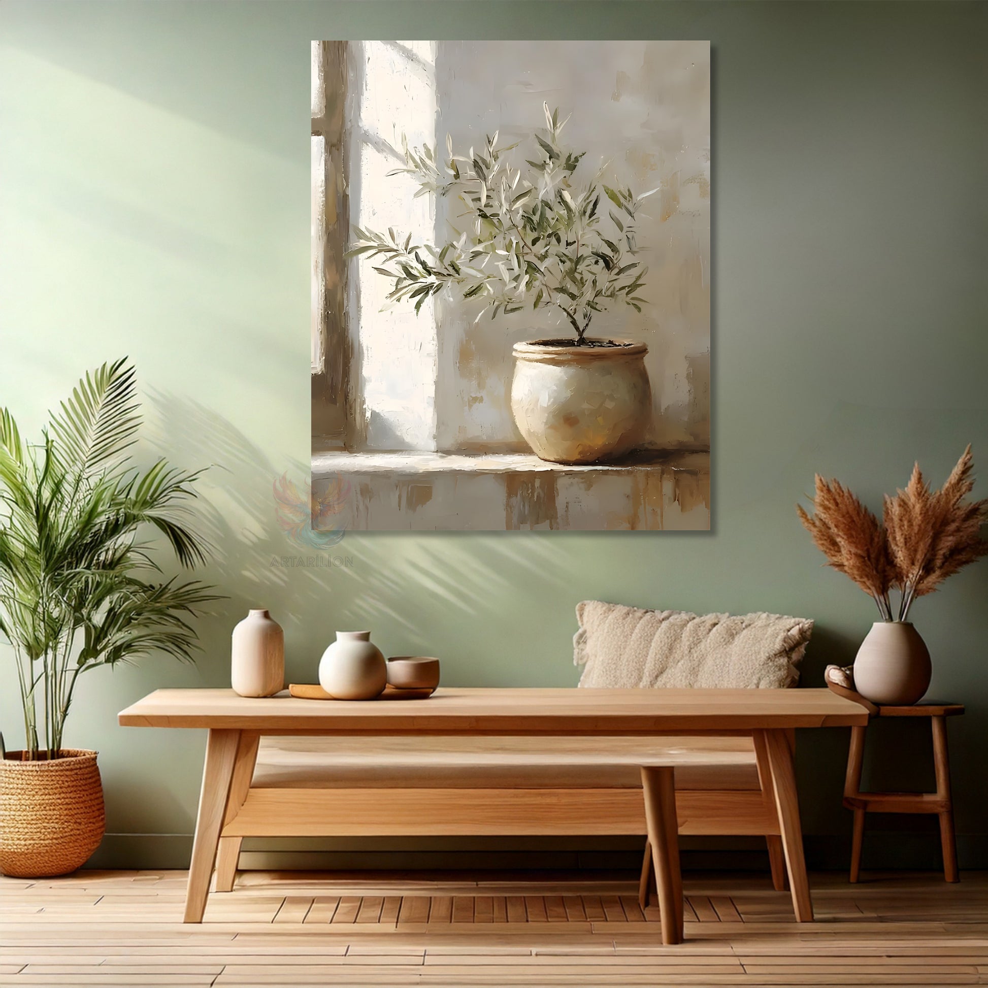 Kanvas Dikey Duvar Tablosu Kanvas Güneş Yansıyan Vazo Ev Ofis Salon Modern Duvar Tablosu