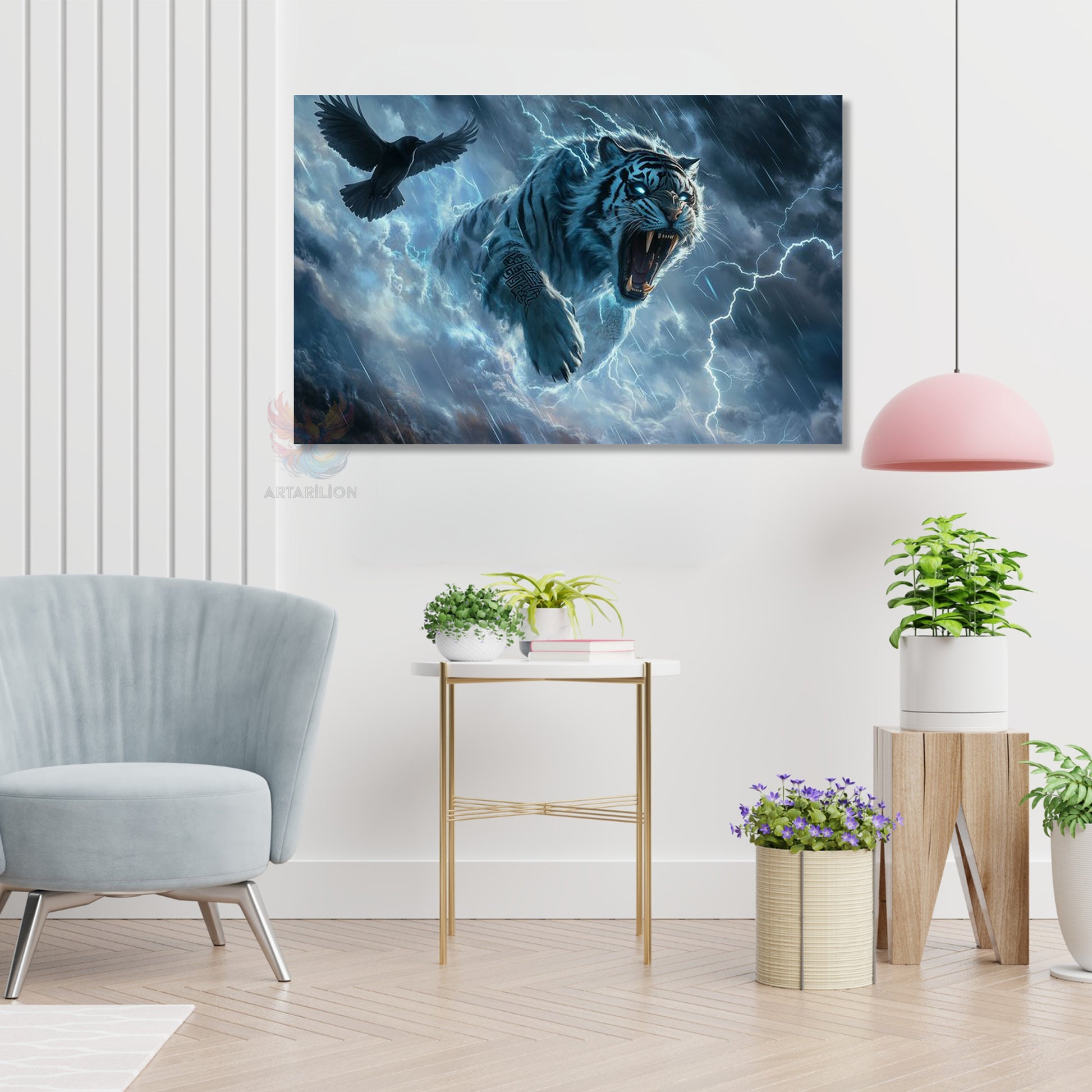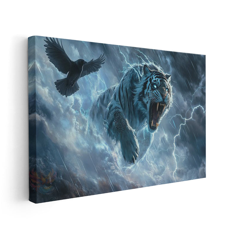 Kanvas Tablo Yüksek Kaliteli Kanvas Duvar Tablosu Kaplan ve Karga Yeni Ev Hediyesi Ev Dekorasyon