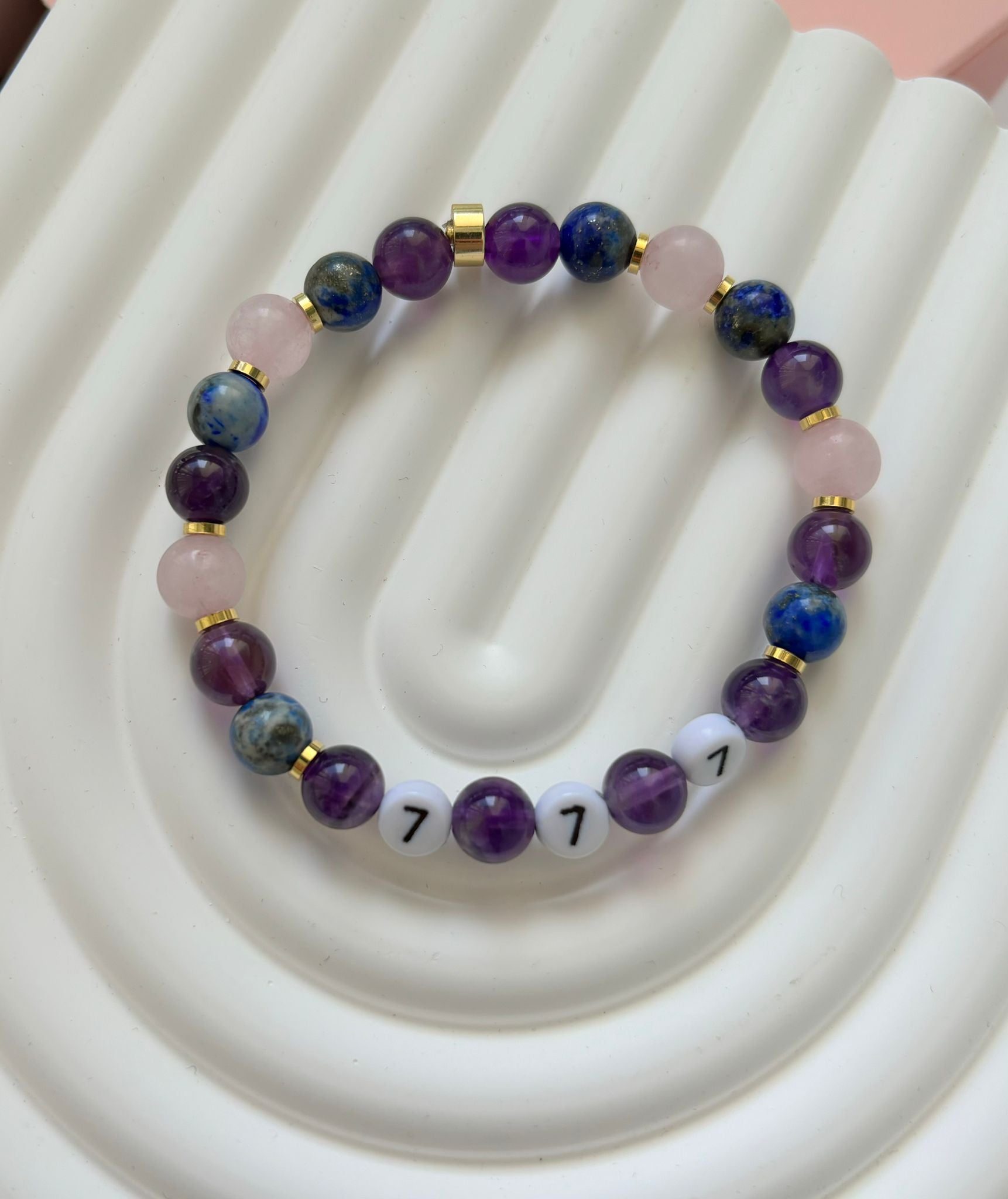 777 Şans Bilekliği Ametist Pembe Kuvars Lapis
