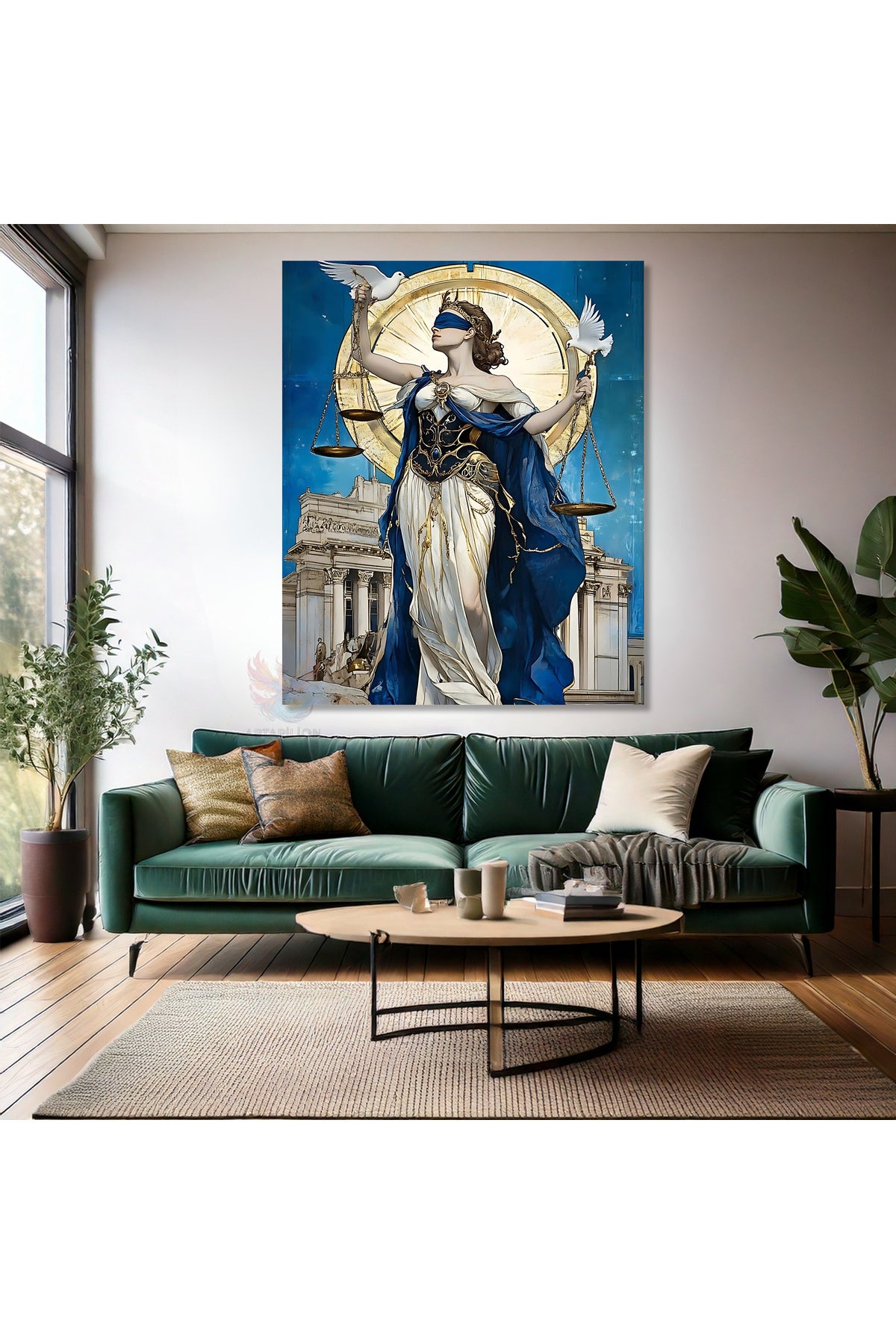 Kanvas Hukuk Tablosu Adalet ve Beyaz Güvercin Büro Tablo Kanvas Duvar Dekoru
