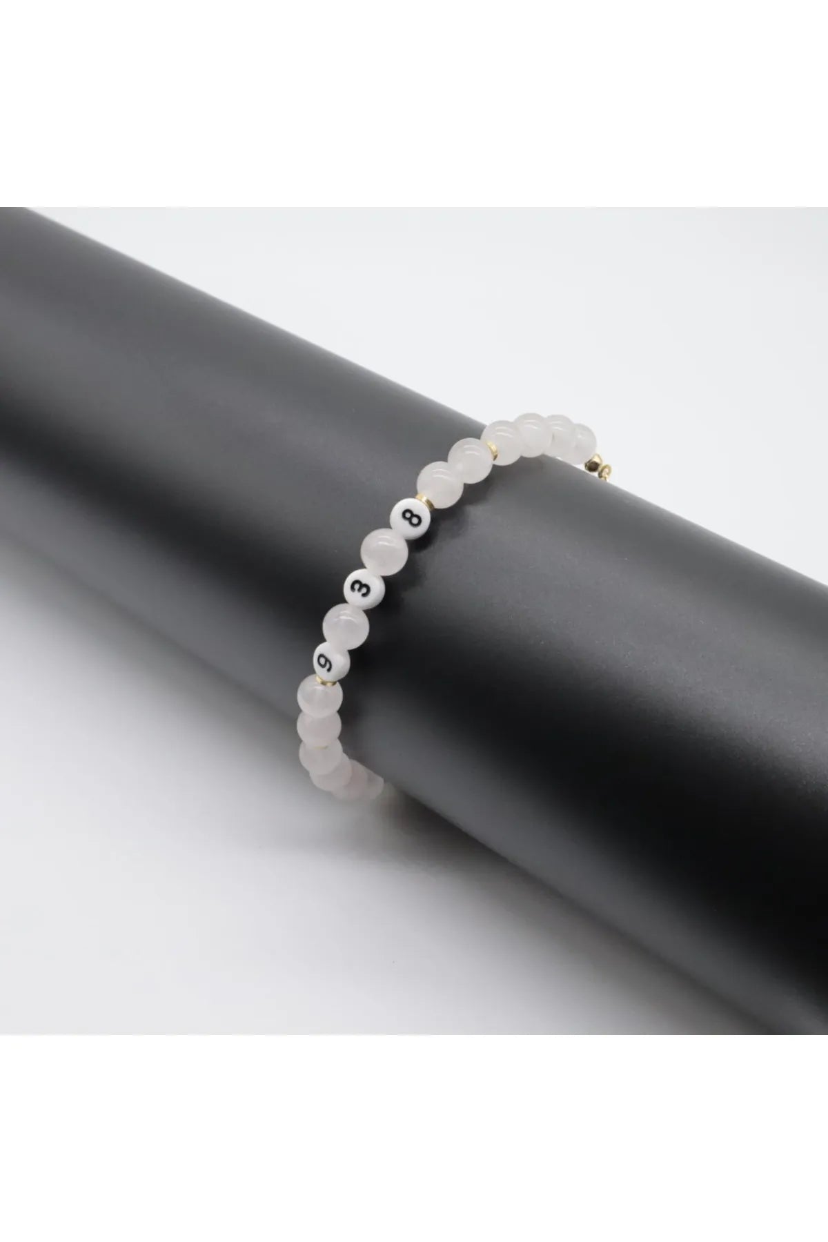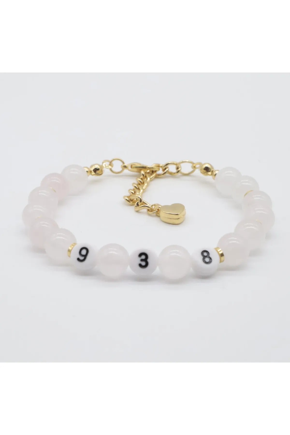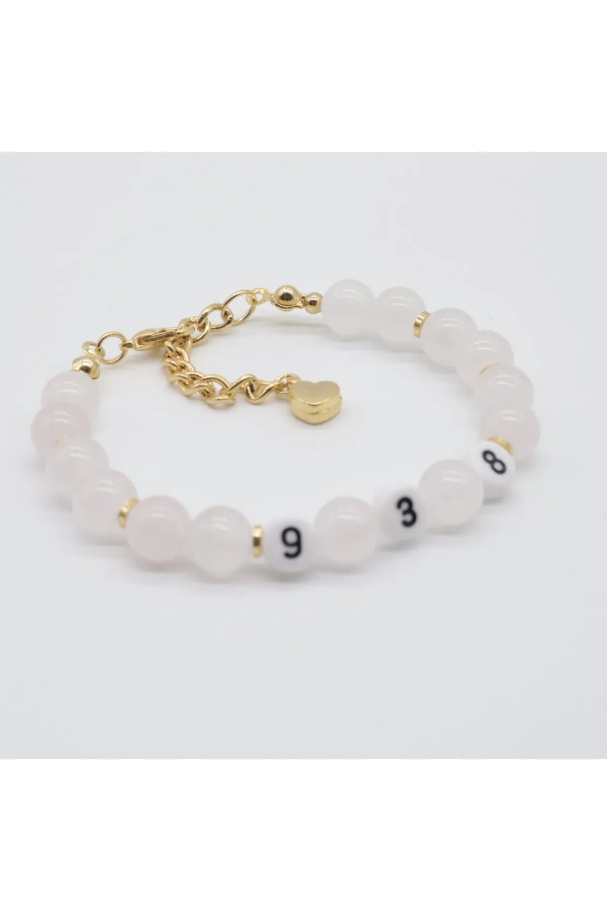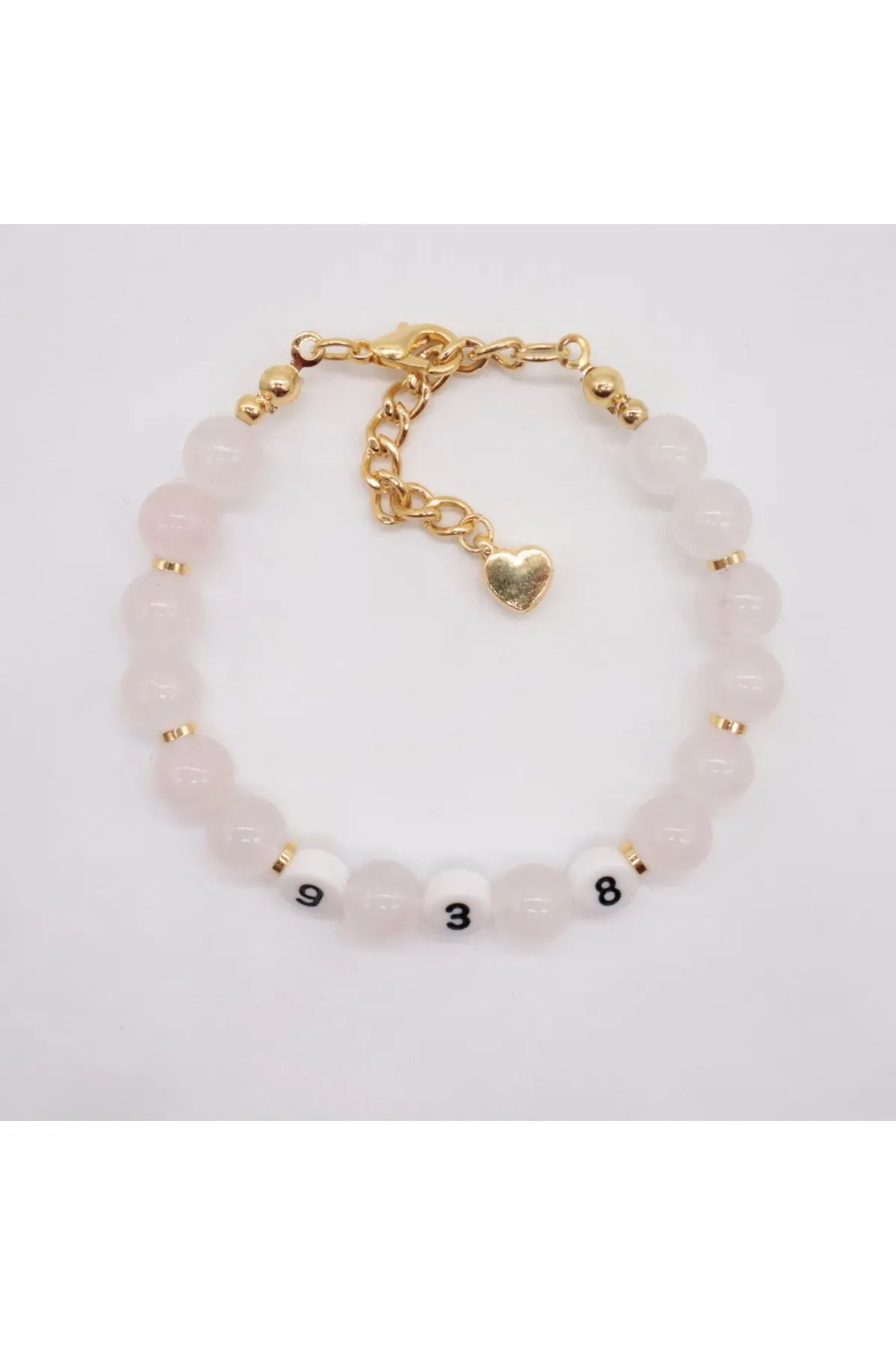 Aşk Sayı Sekansı 938 Doğal Taş Kadın Bilekliği Pembe Kuvars