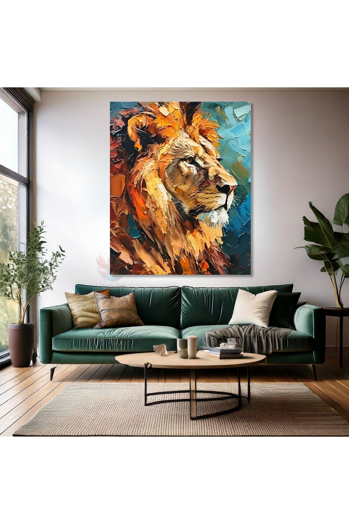 Yağlı Boya Görünümlü Kanvas Tablo Renkli Aslan Tablosu Modern Ev Dekoru