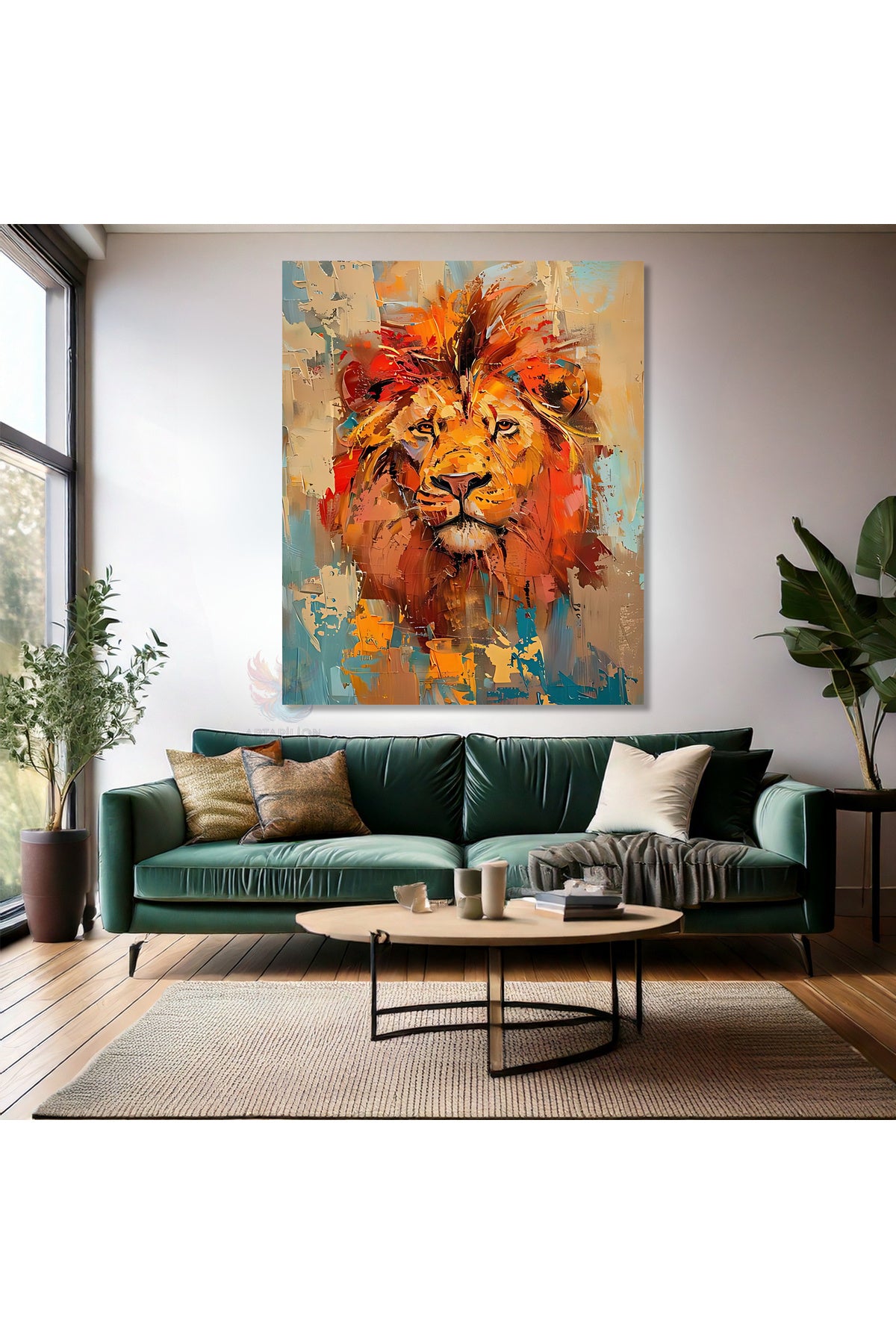 Dekoratif Kanvas Aslan Tablosu Minimalist Salon Tablosu Yeni Ev Dekoru