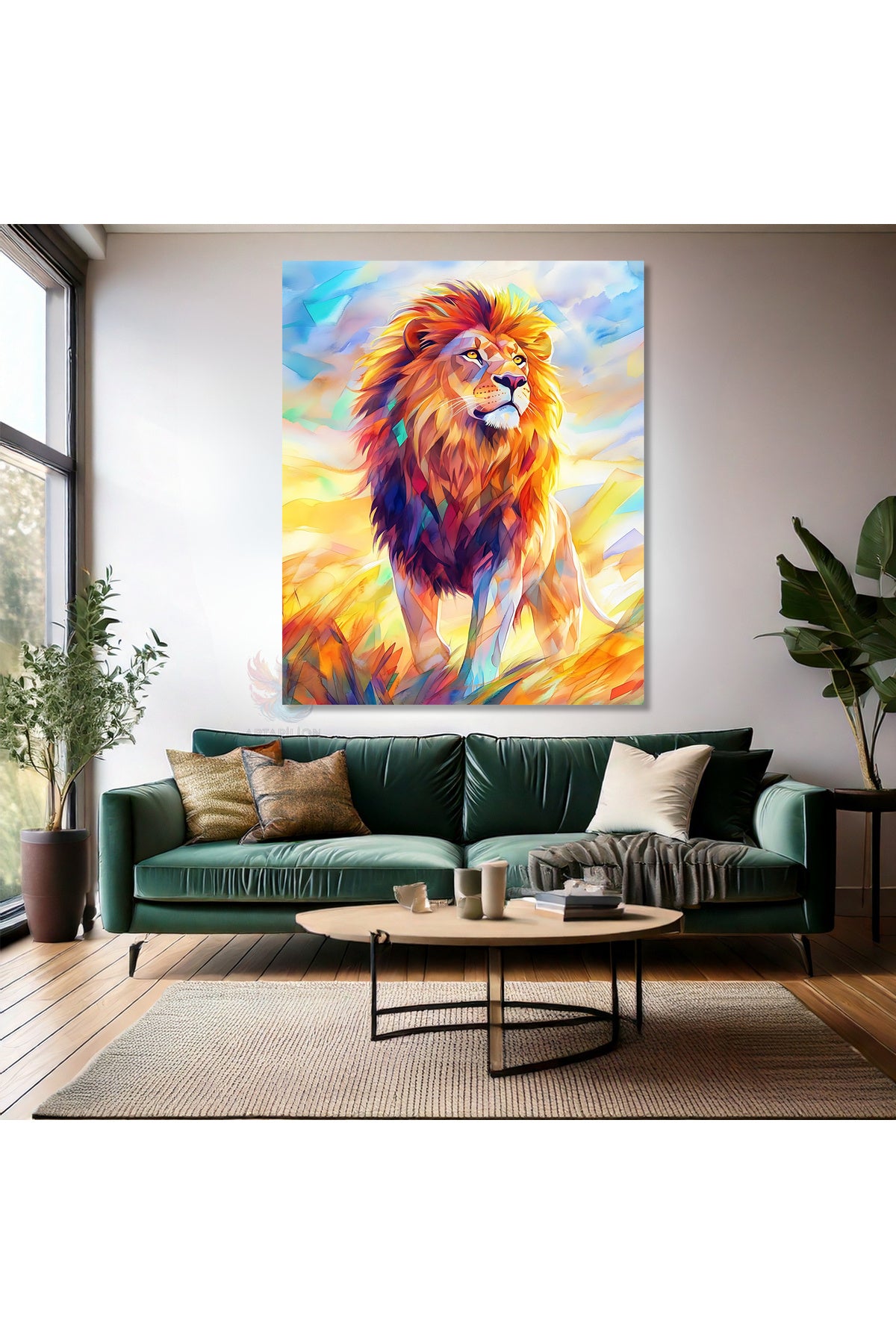 Soyut Renkli Aslan Tablosu Modern Çizim Kanvas Aslan Tablosu
