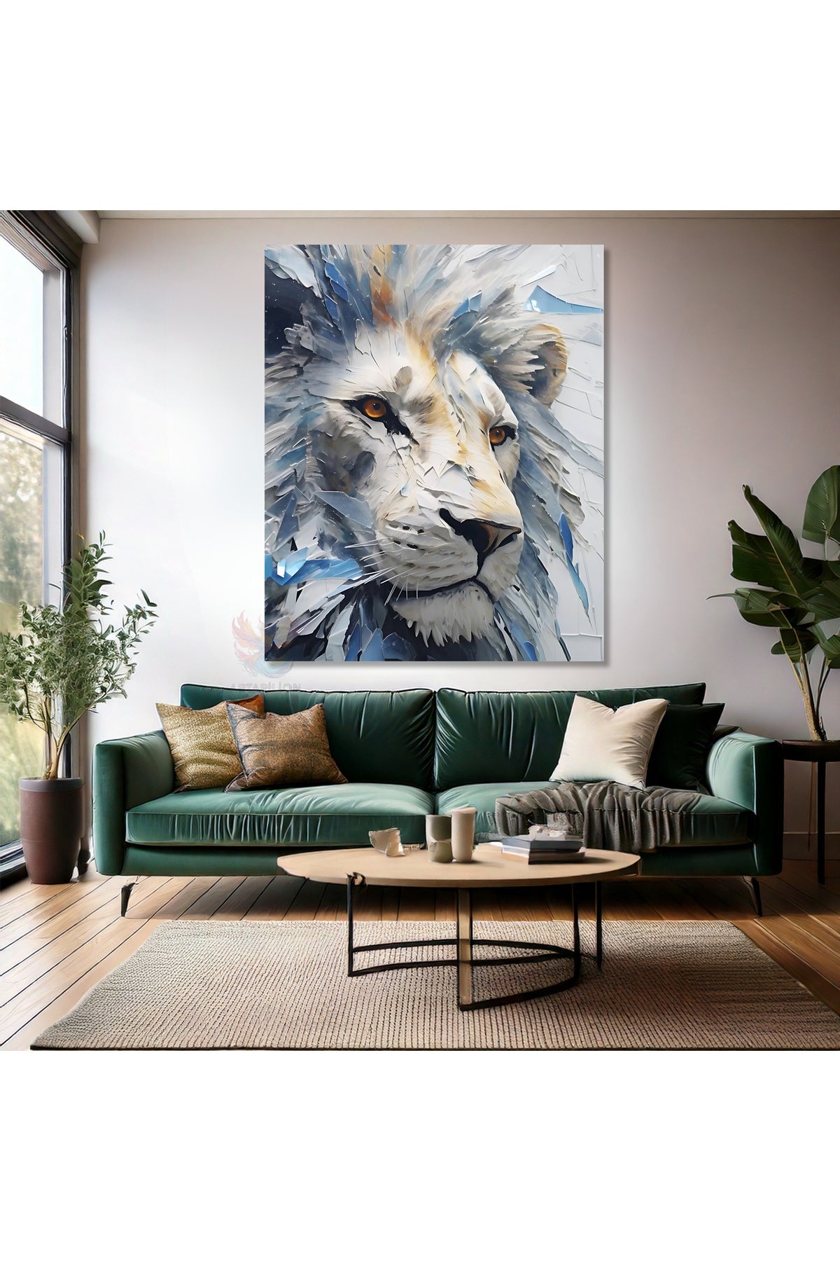 Beyaz Aslan Tablosu Kanvas Oturma Odası Duvar Tablosu Modern Ev Dekoru