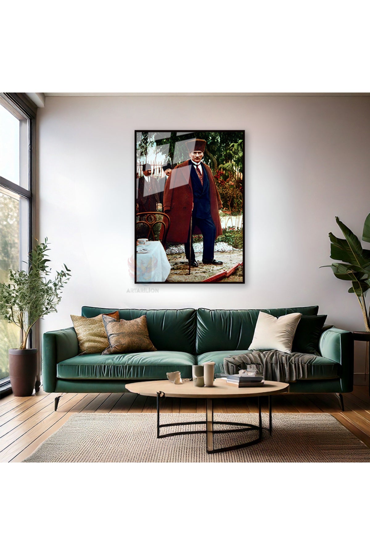 Ulu Önder Atatürk Metal Çerçeveli Cam Tablo Dikey Duvar Tablosu Renkli Atatürk Ev Ofis Dekoru