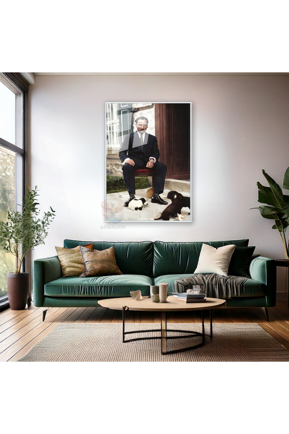 Takım Elbiseli Atatürk Metal Çerçeveli Cam Duvar Tablosu Dikey Tablo Ev Ofis Dekoru