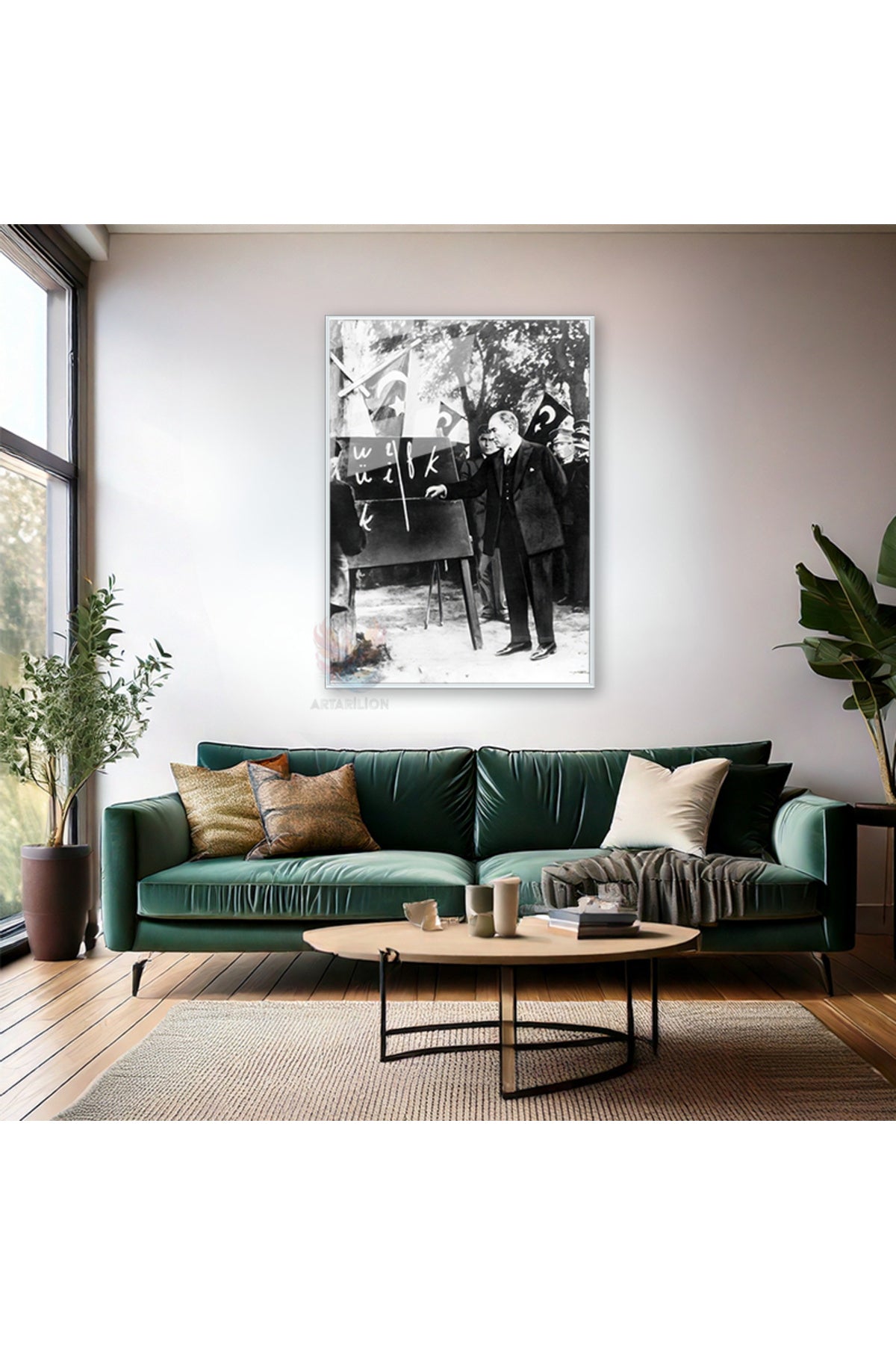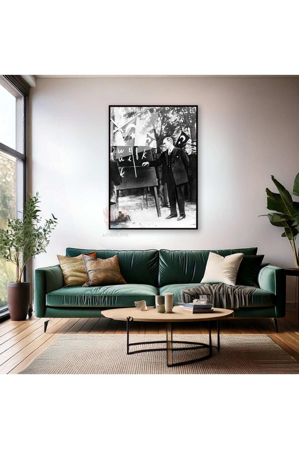 Atatürk Baş Öğretmen Metal Çerçeveli Cam Tablo Dikey Duvar Tablosu Okul Ofis Tablosu