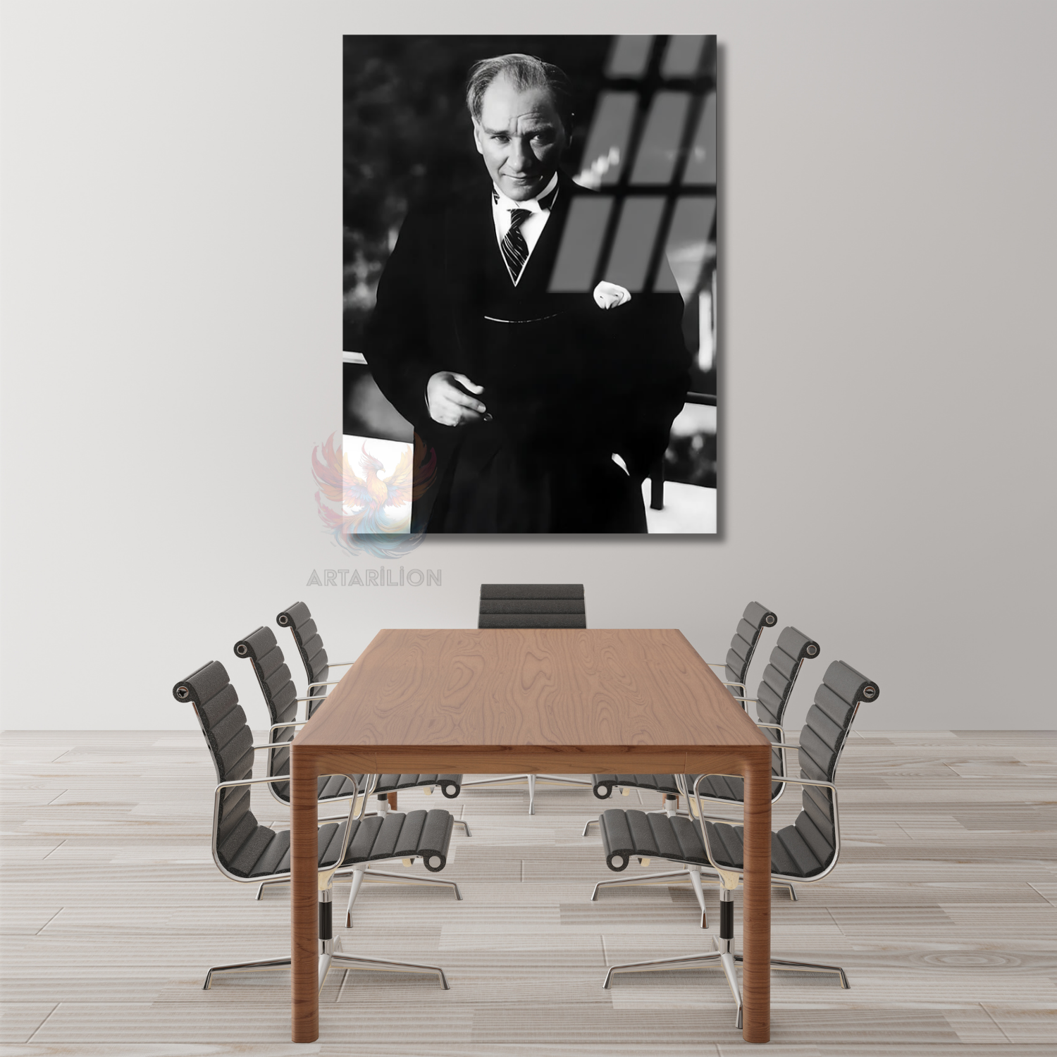 Siyah Beyaz Atatürk Portresi Cam Tablo Mustafa Kemal Atatürk Tablo Modeli Ev Ofis Dekoru