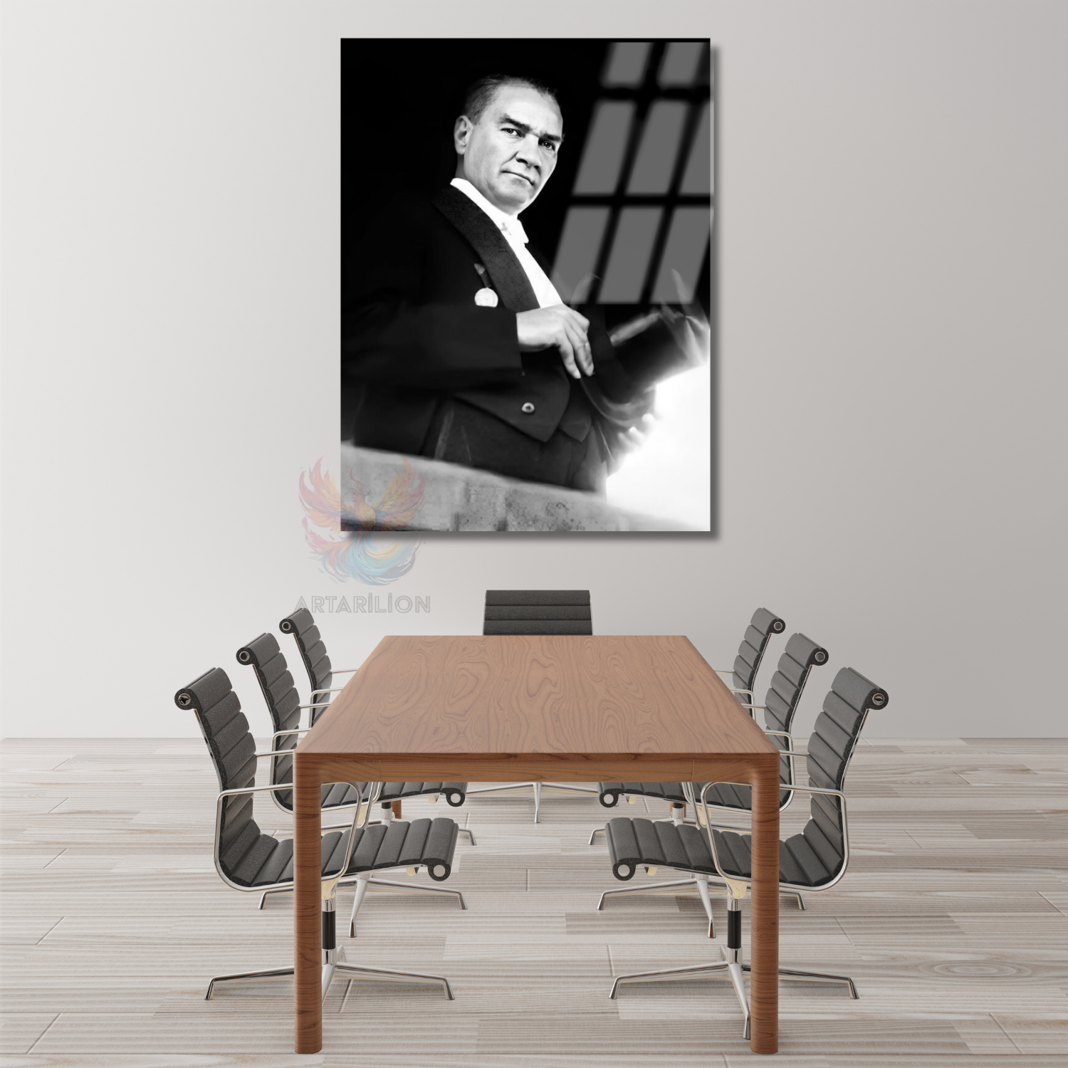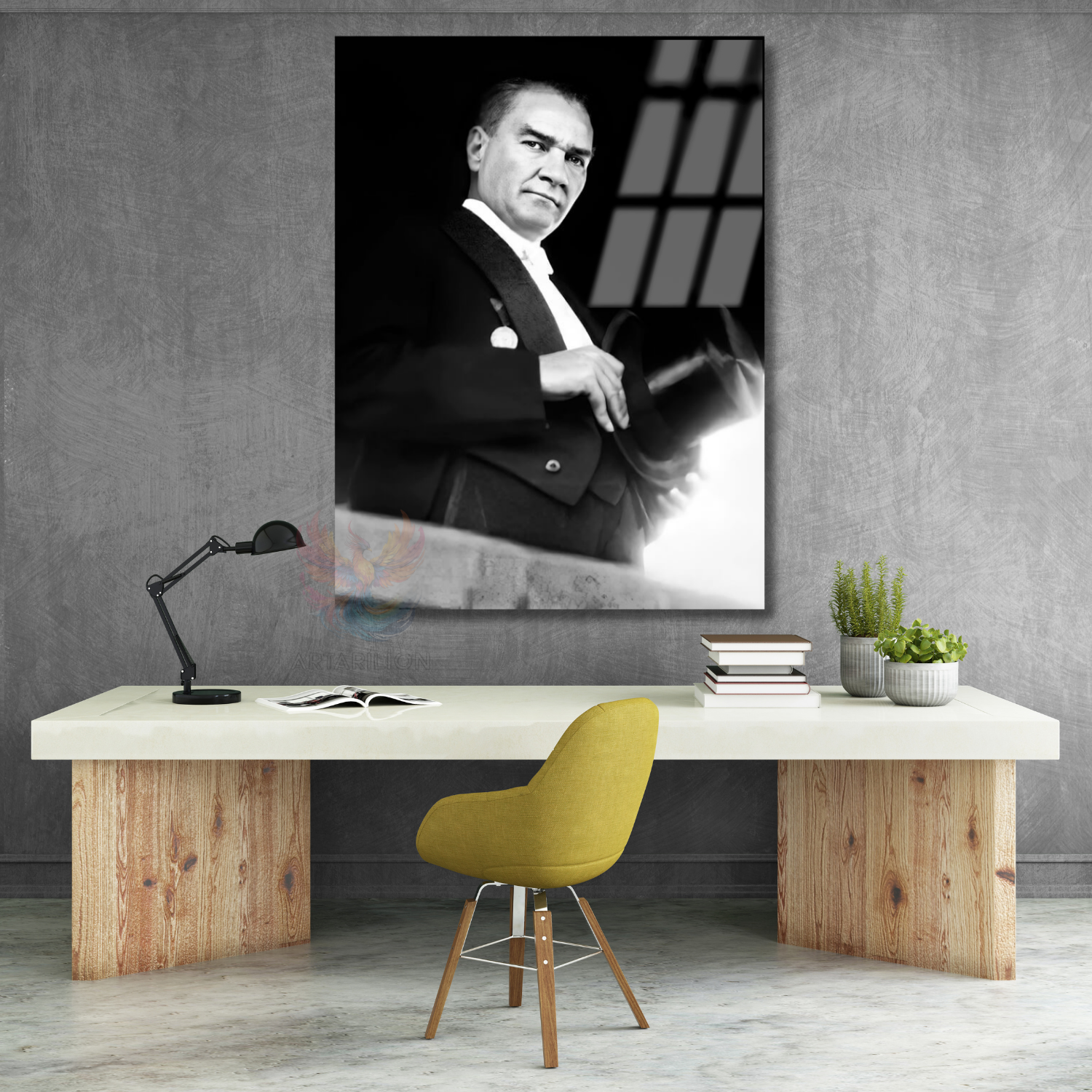 Atatürk Portresi Cam Tablo Şapka Tutan Atatürk Tablosu Ev Ofis DekoruDuvar Tablosu