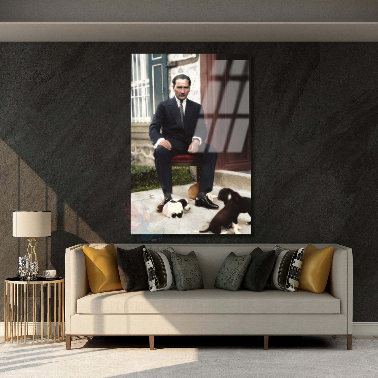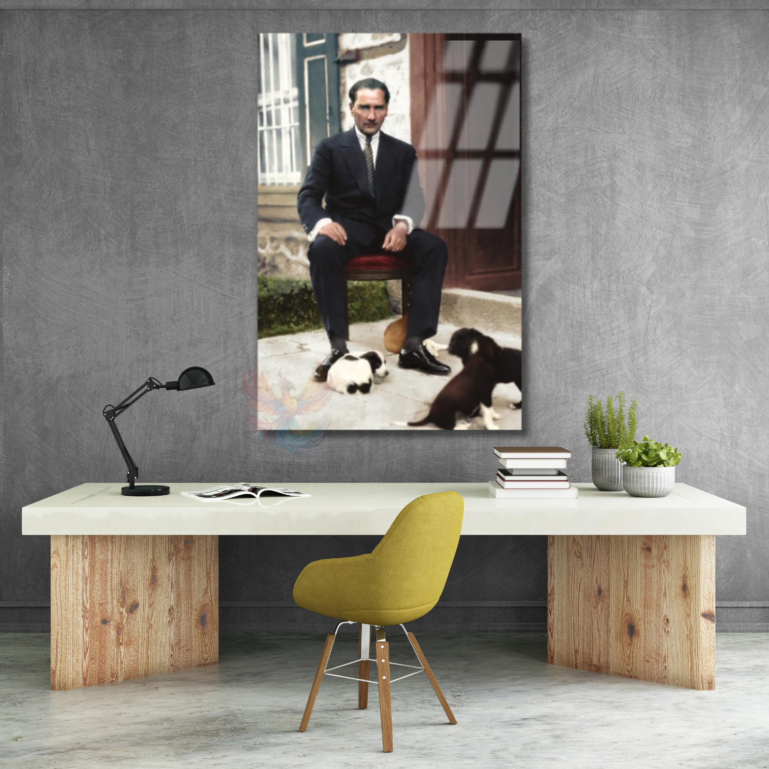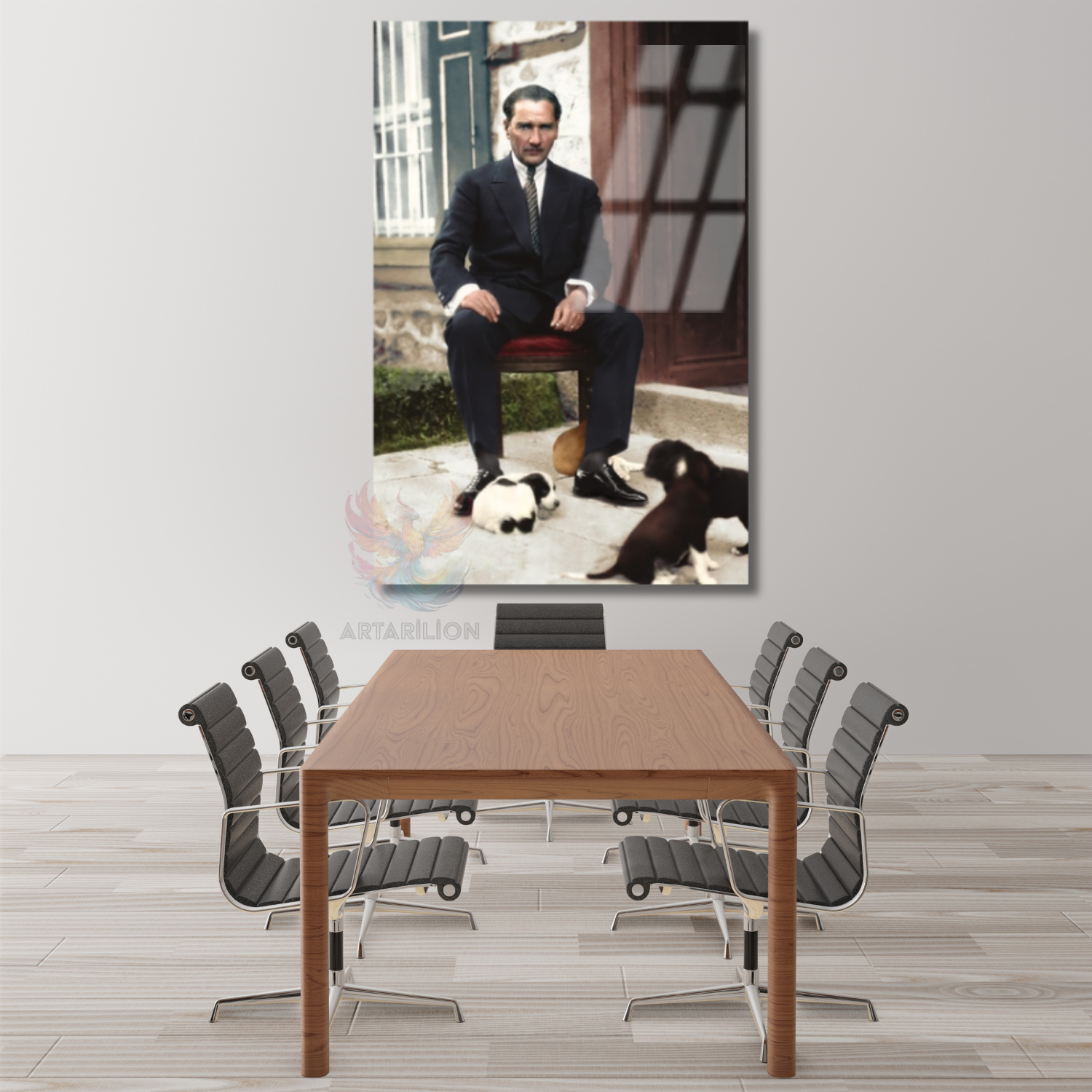 Takım Elbiseli Atatürk Cam Duvar Tablosu Dikey Tablo Ev Ofis Dekoru