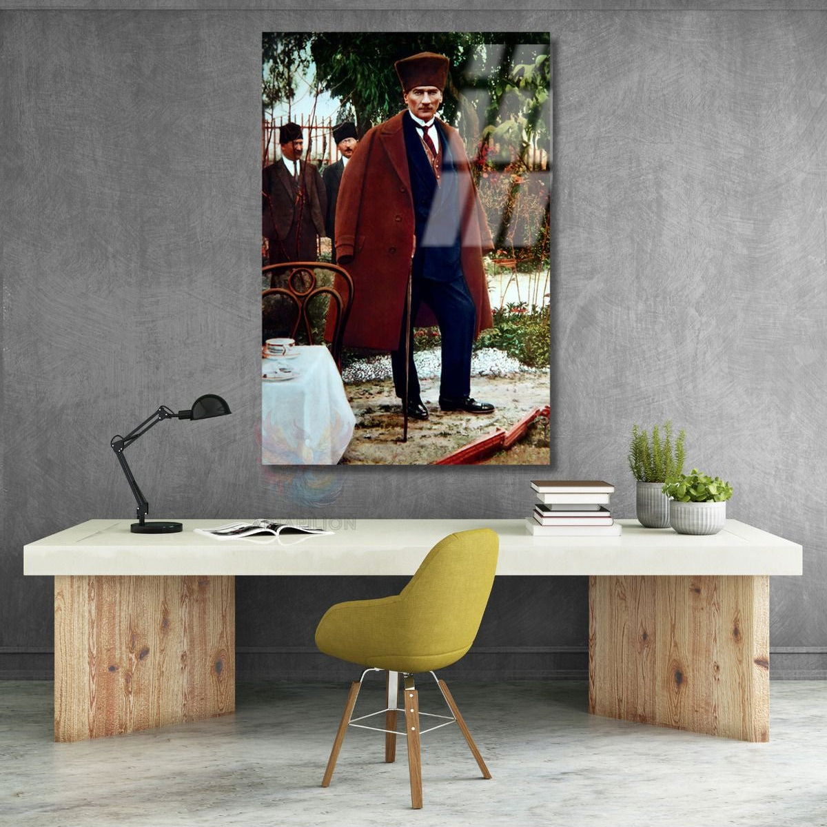 Ulu Önder Atatürk Cam Tablo Dikey Duvar Tablosu Renkli Atatürk Görseli Ev Ofis Dekoru