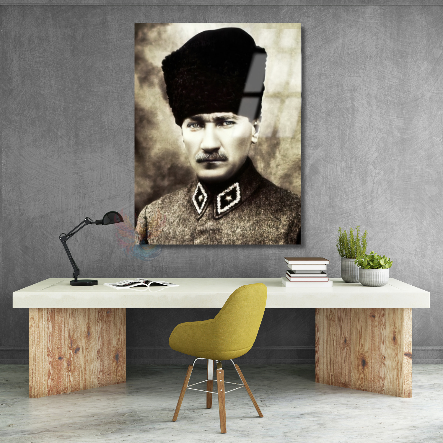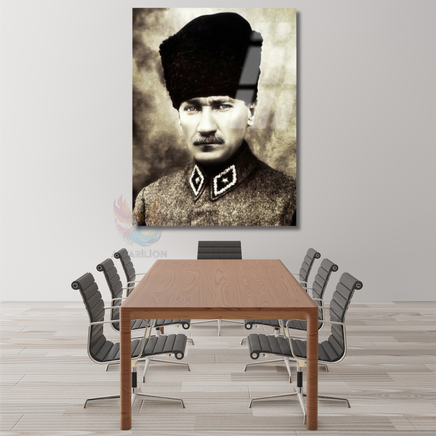 Atatürk Görseli Cam Tablo Dikey Duvar Tablosu Ev Ofis Dekoru Ev Ofis Hediyesi
