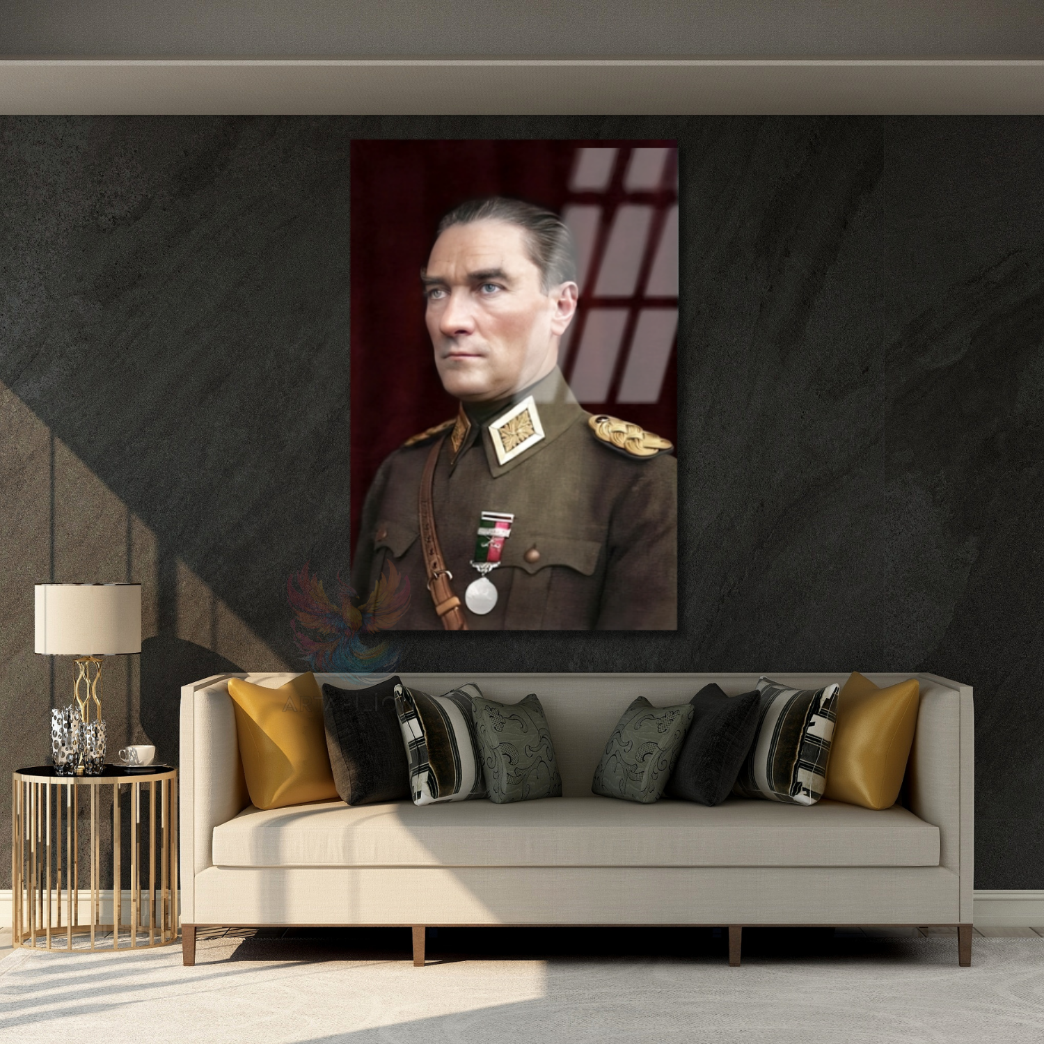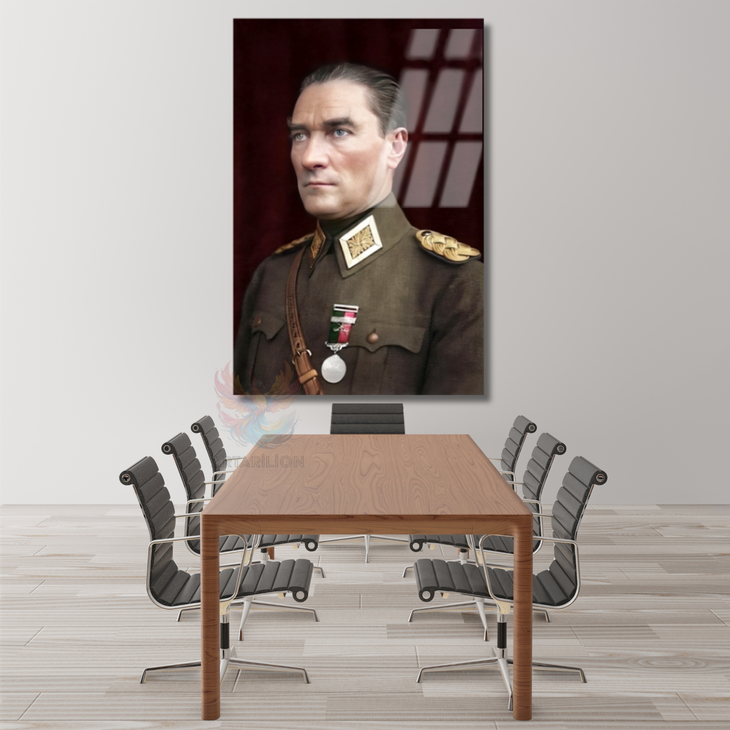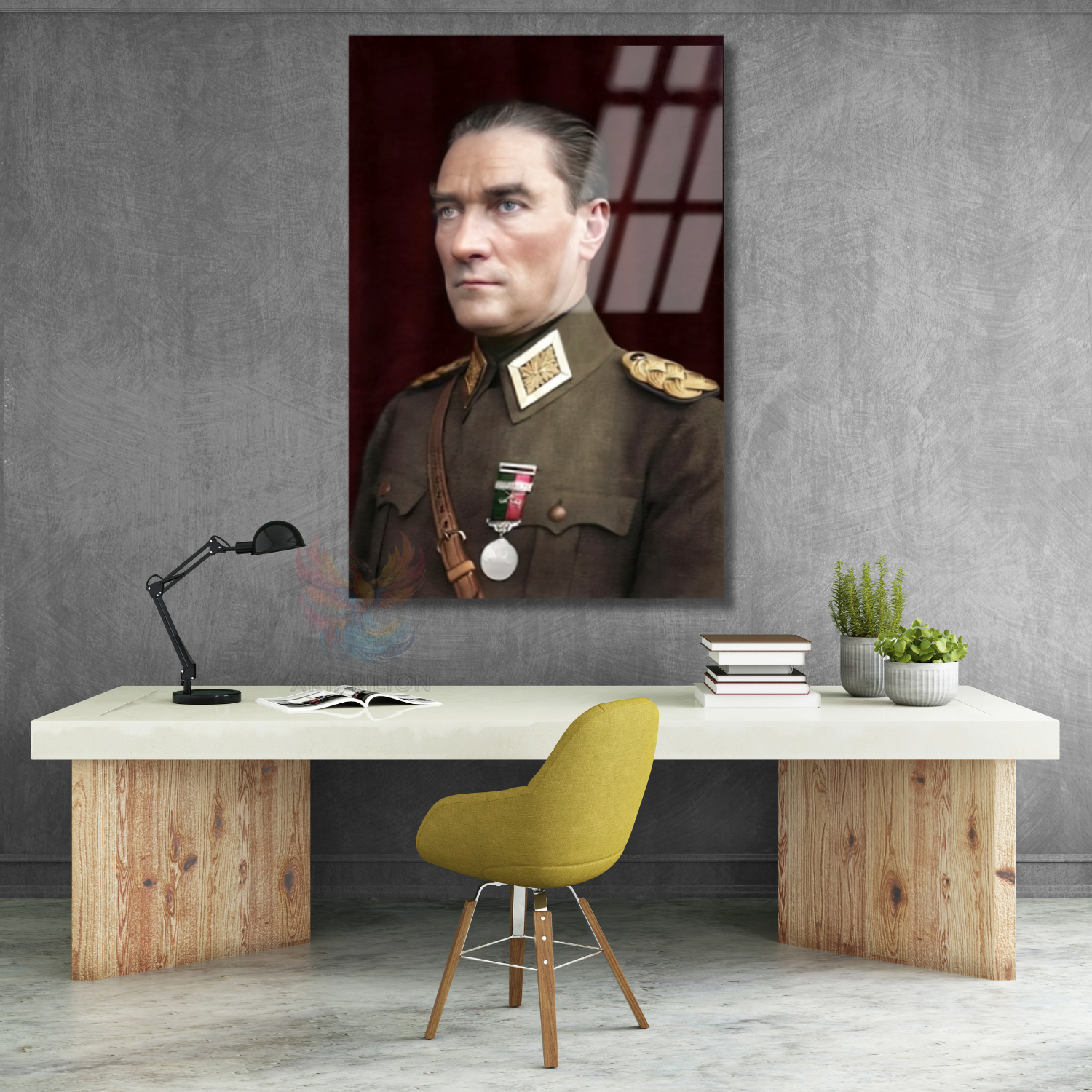 Dikey Cam Renkli Atatürk Tablosu Cam Ofis Ev Tablosu Duvar Dekoru