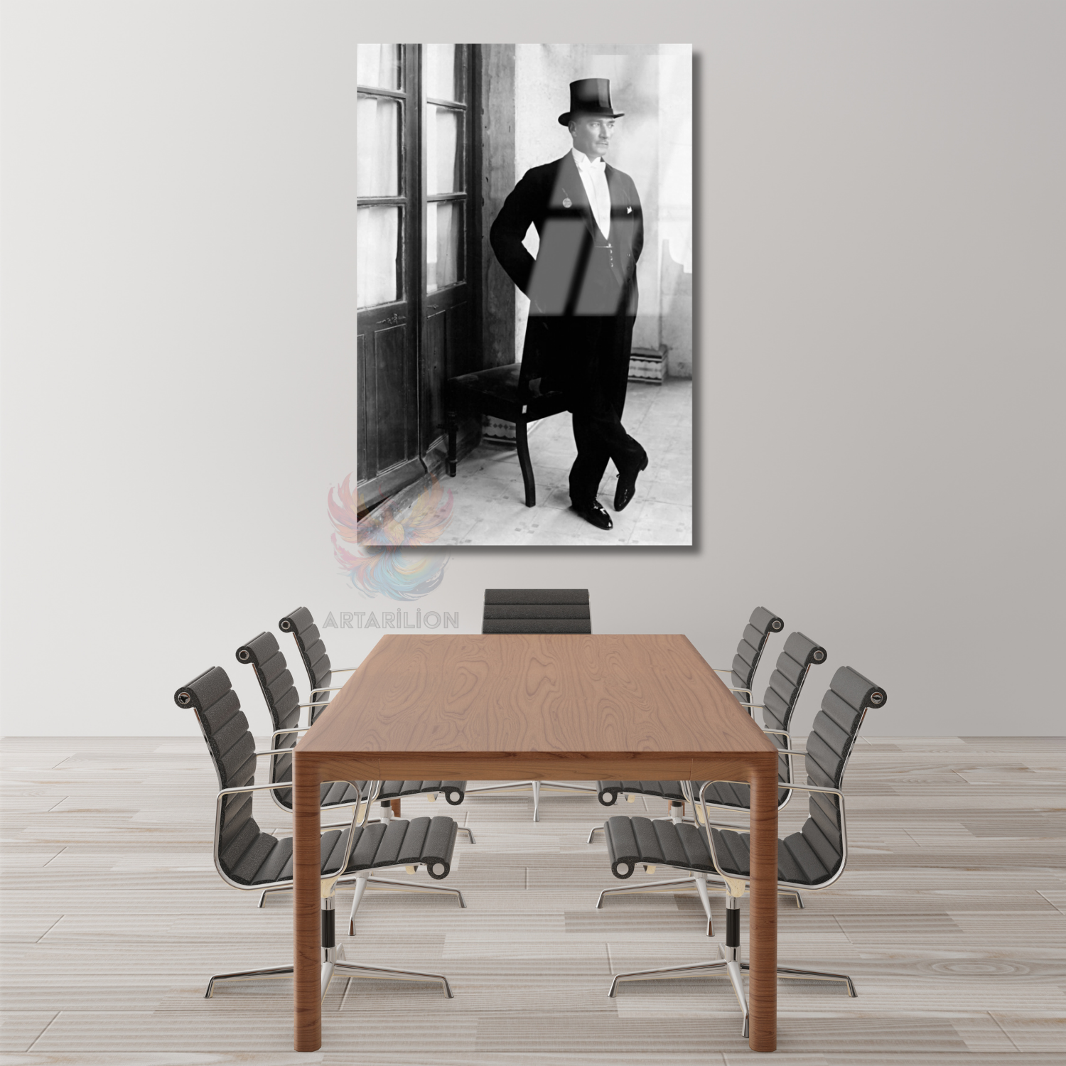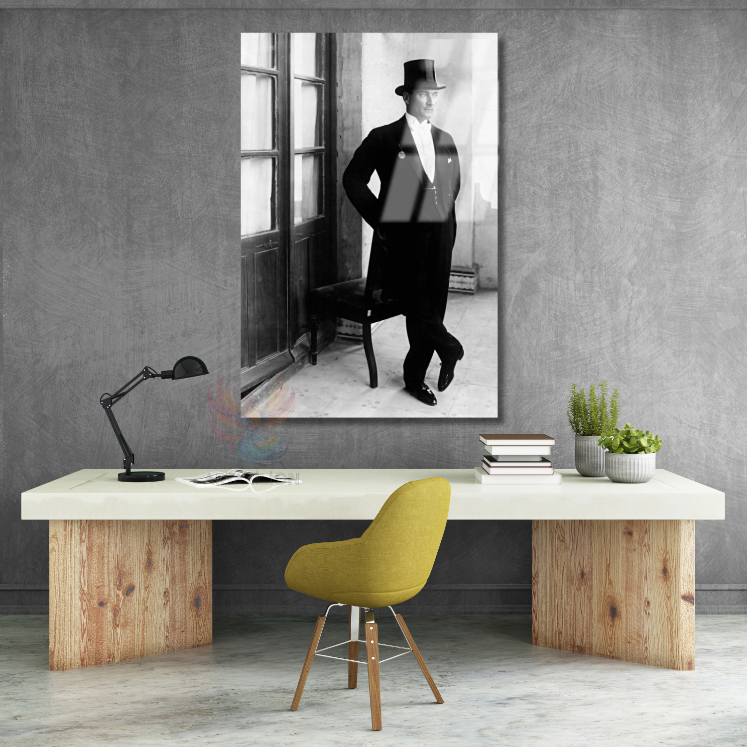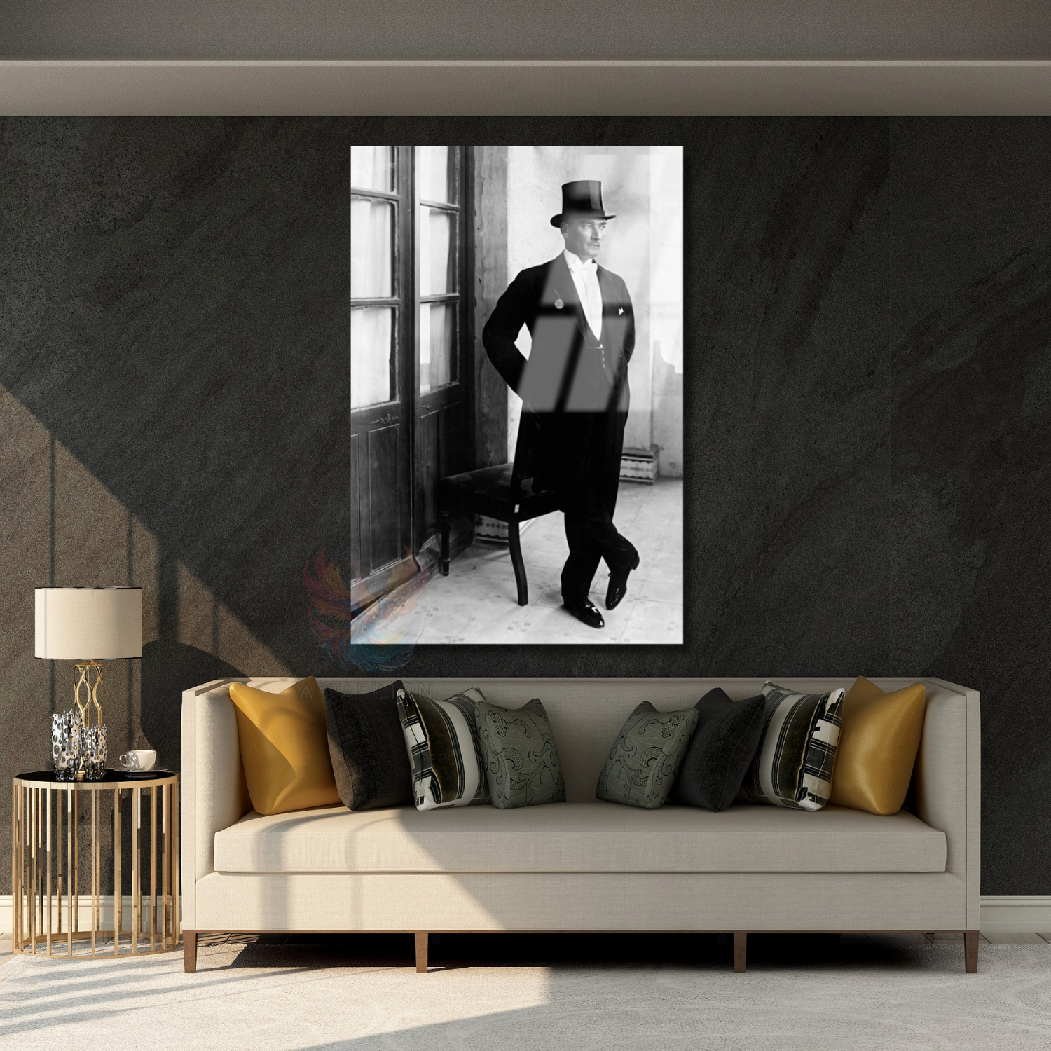 Cam Atatürk Tablo Modeli Şapkalı Atatürk Görseli Dikey Duvar Tablosu