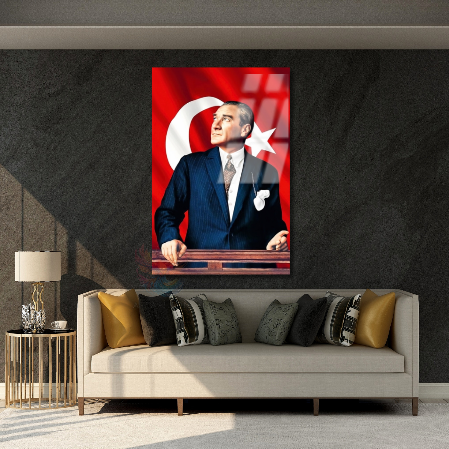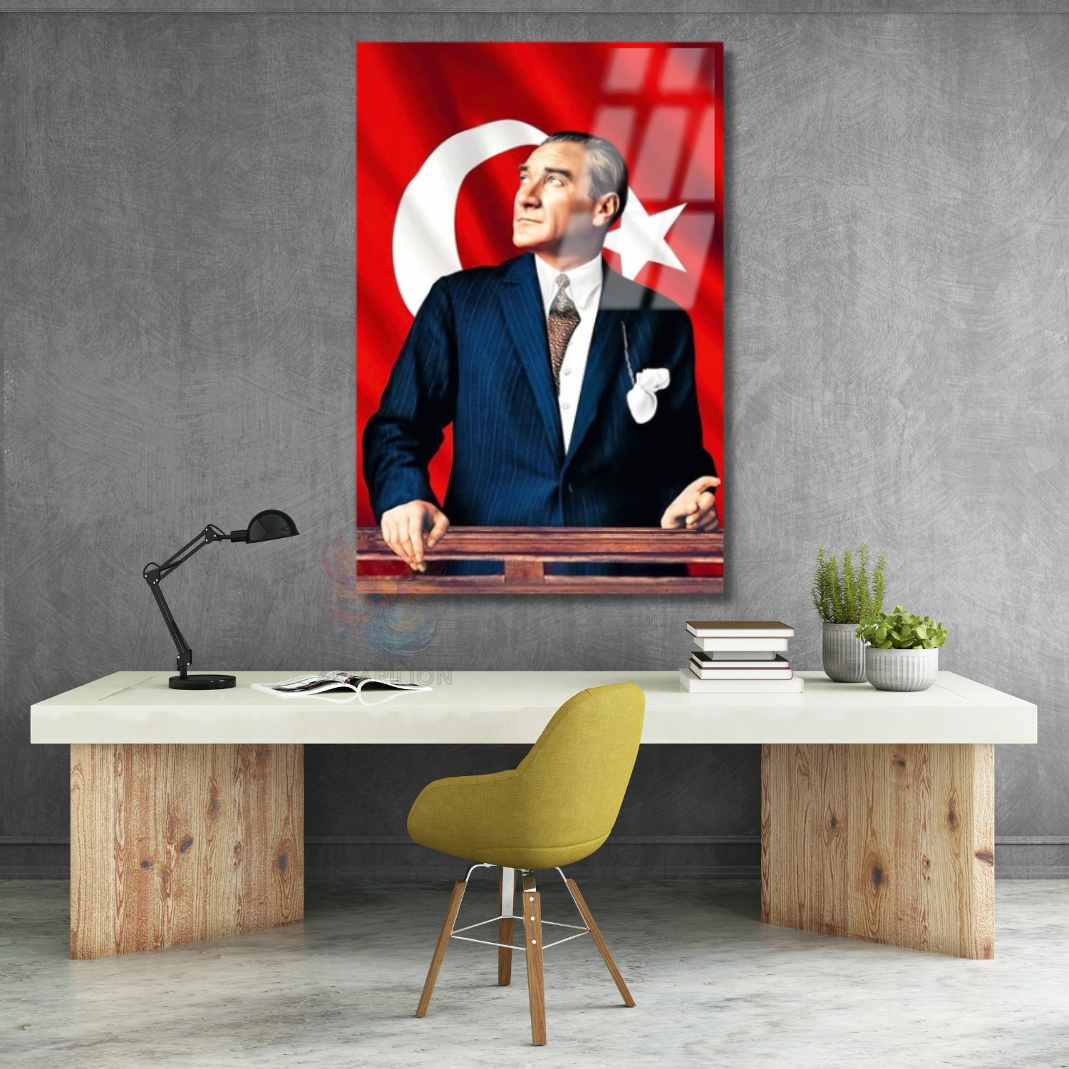 Atatürk ve Bayrak Cam Tablo Modeli Sınıf Tablosu Okul Ev Ofis Tablosu