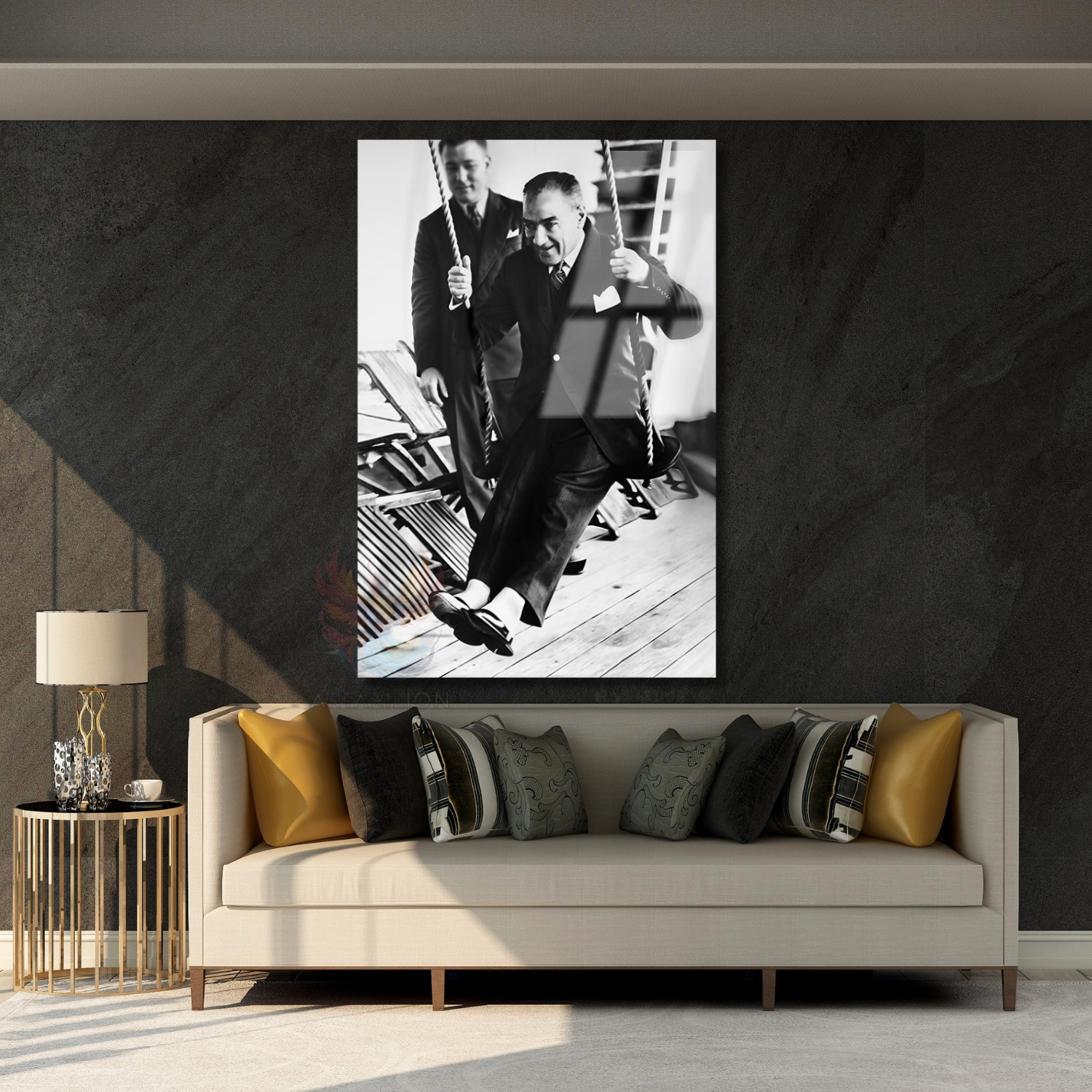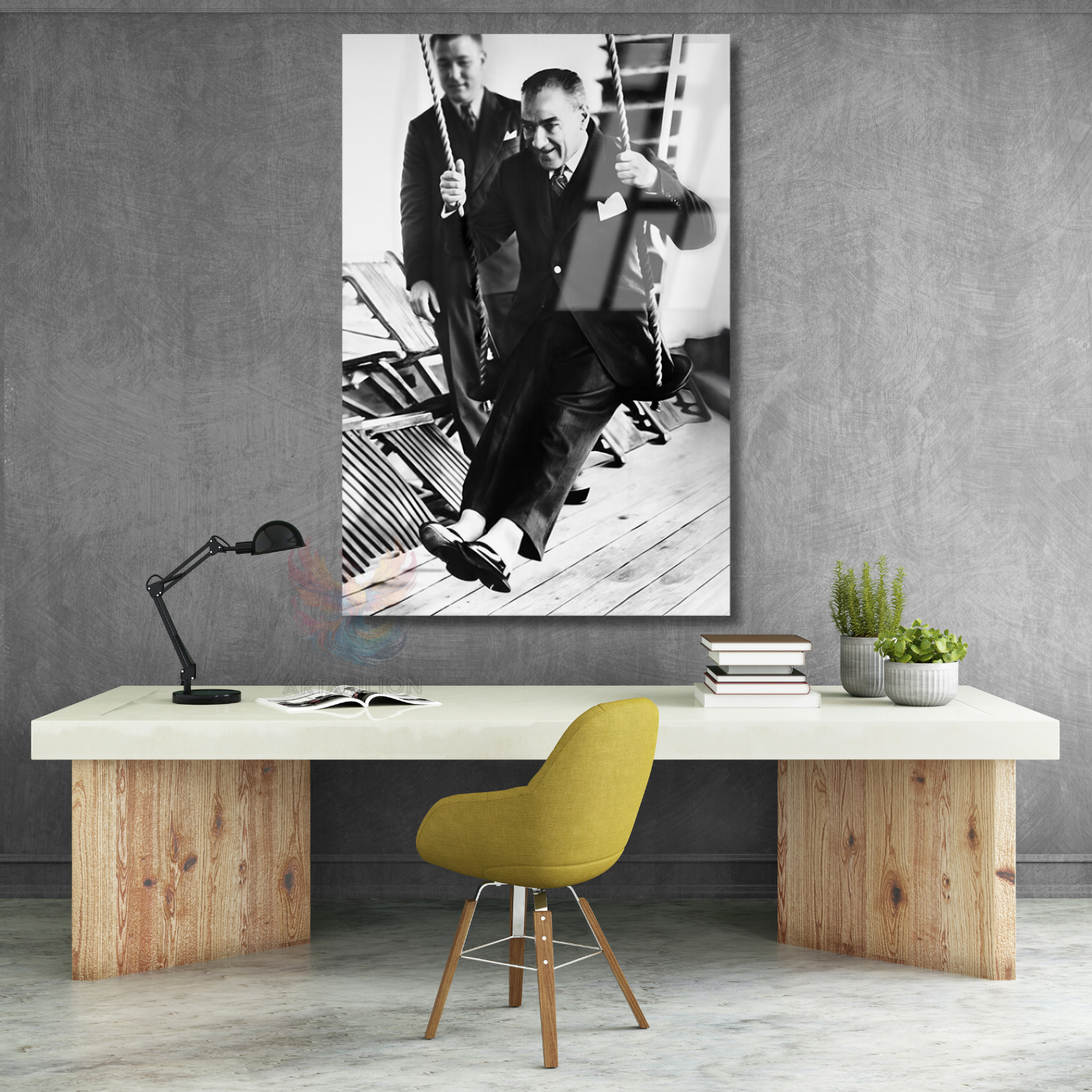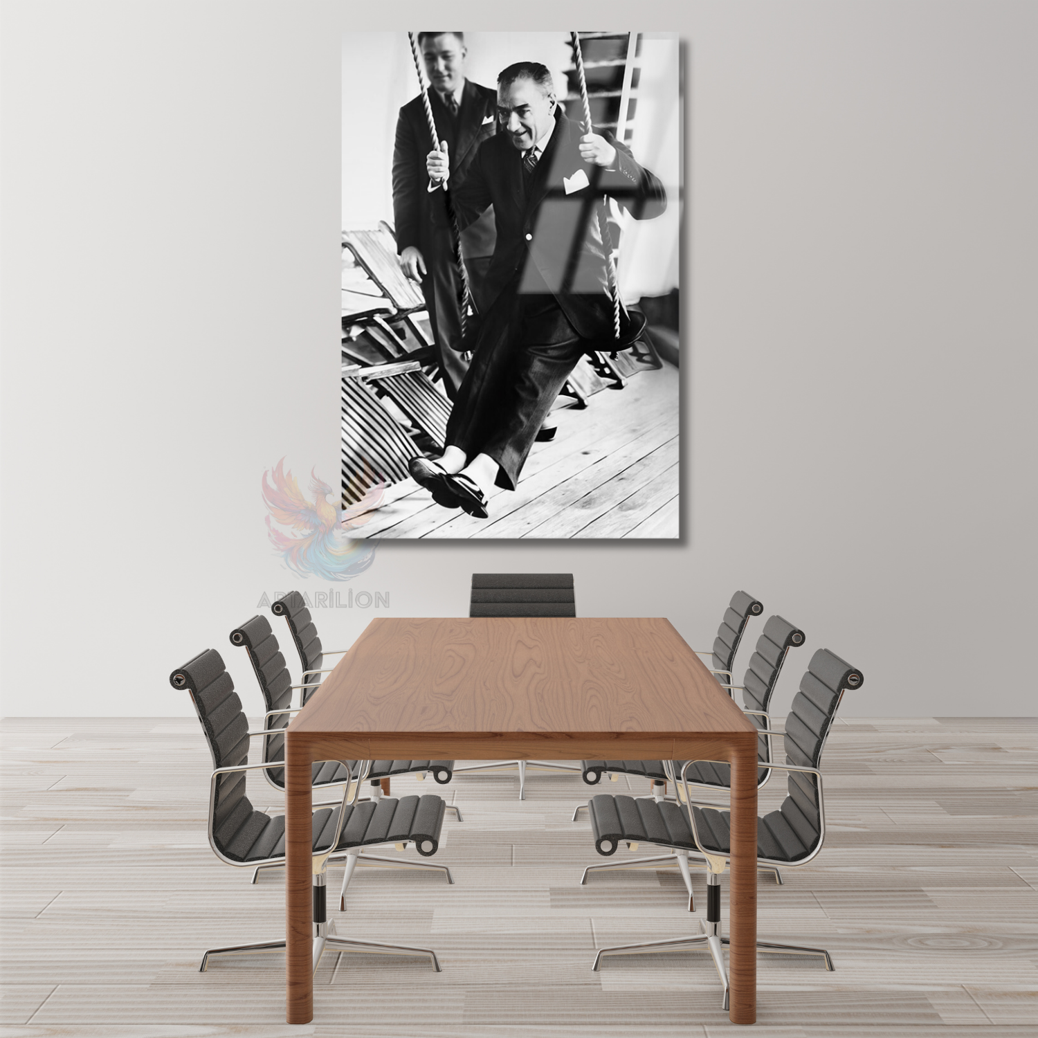 Salıncakta Sallanan Atatürk Görseli Cam Tablo Modeli Atatürk Tablosu