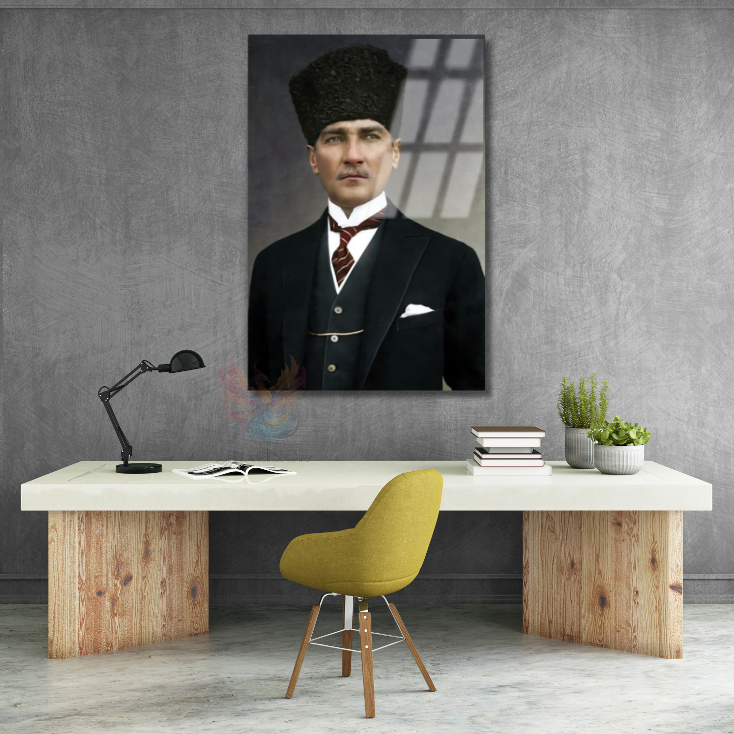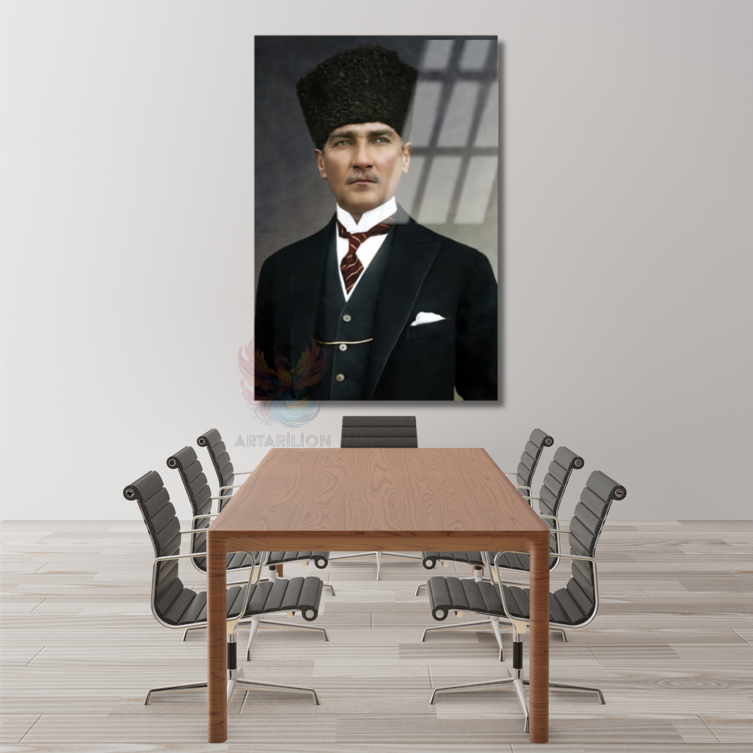 Mustafa Kemal Atatürk Cam Tablo Atatürk Portre Dikey Duvar Tablosu Ev Ofis Tablosu