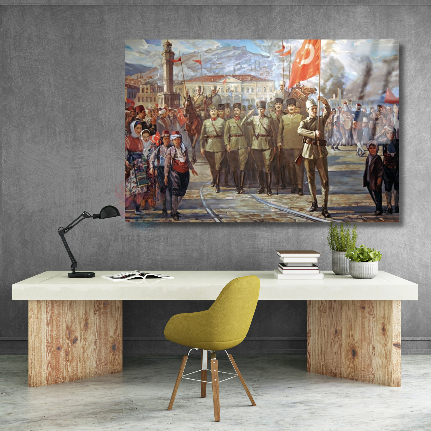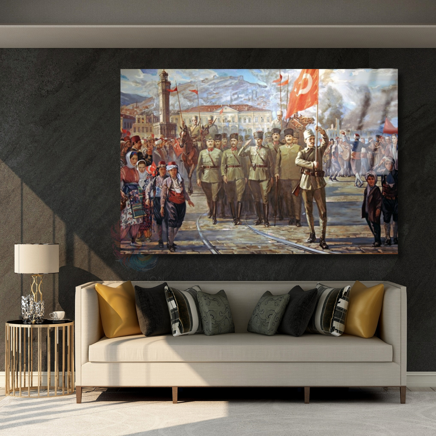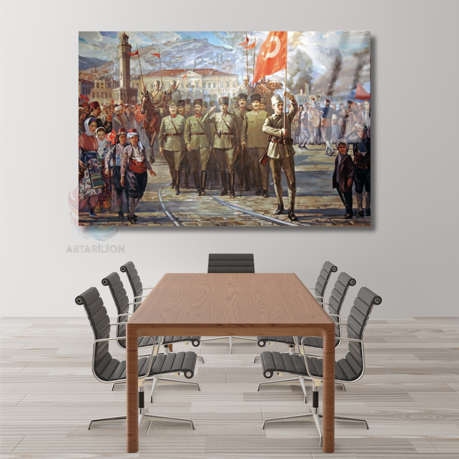 Halk ve Atatürk Cam Tablo Yatay Duvar Tablosu Zafer Temalı Tablo Ev Okul Ofis Tablosu