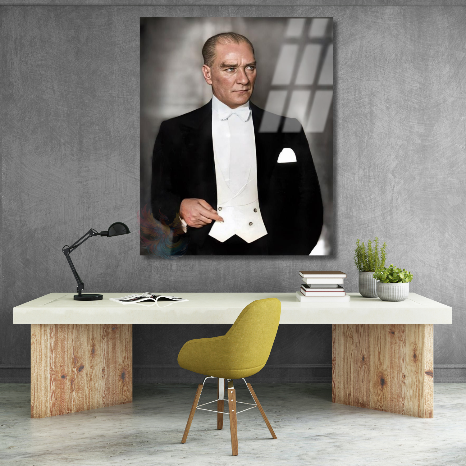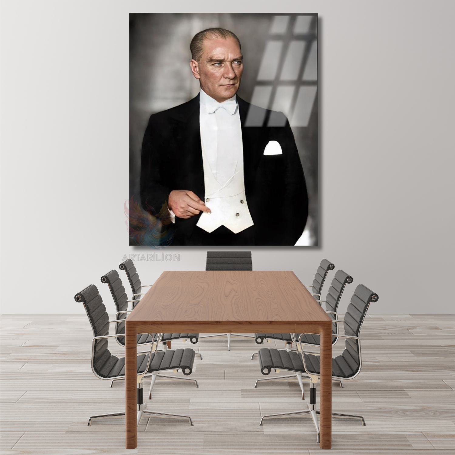 Mustafa Kemal Atatürk Renkli Tablo Cam Tablo Modeli Hd Dijital Baskı Duvar Tablosu