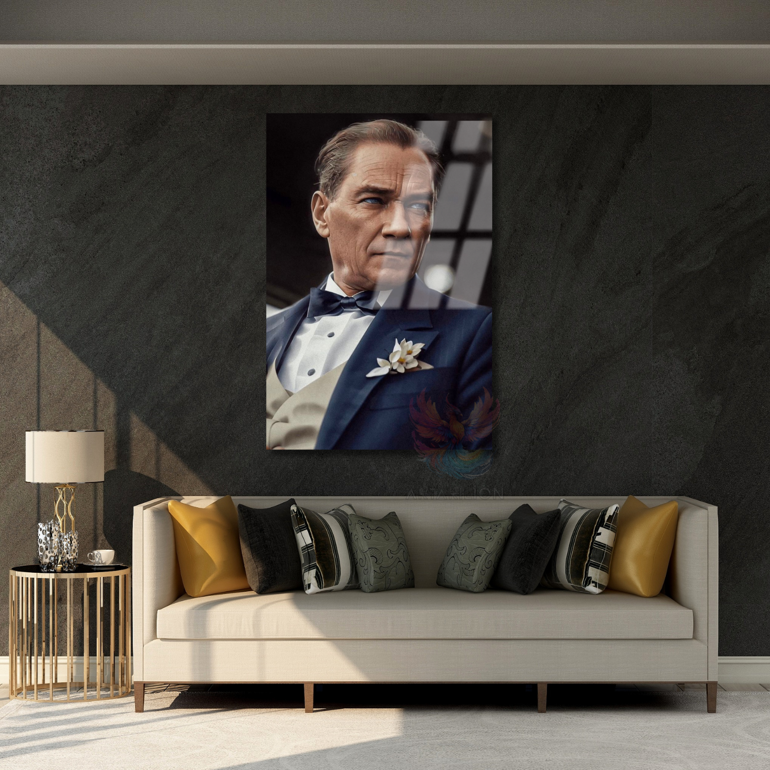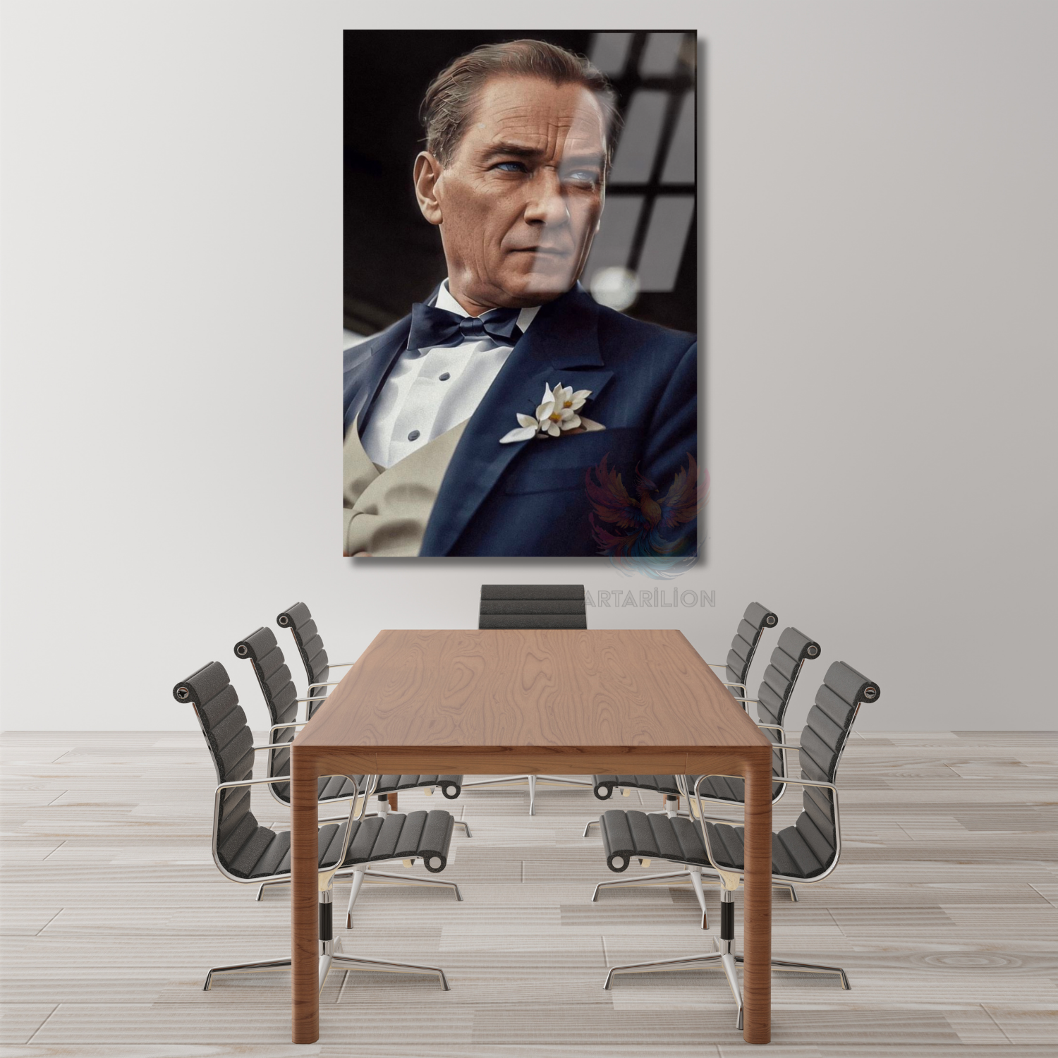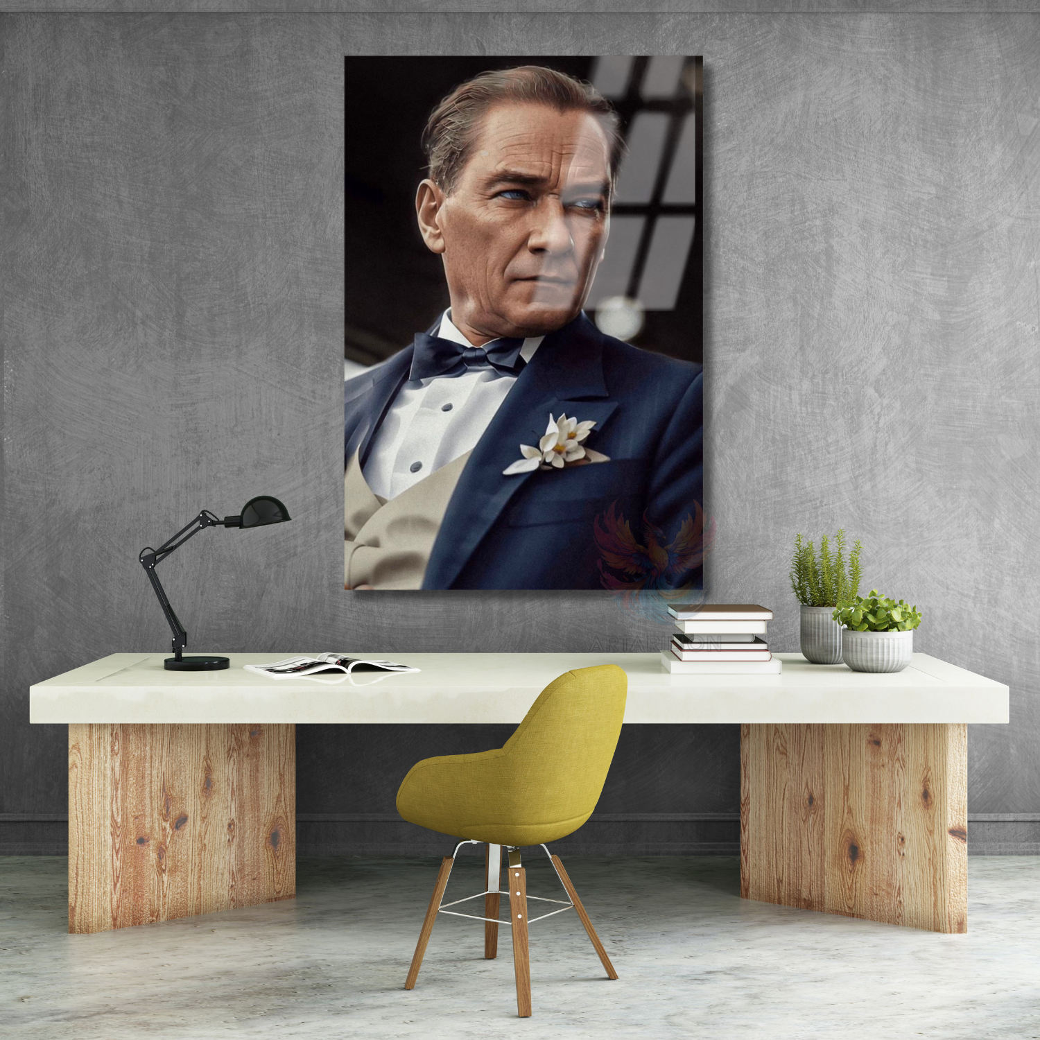 Karizmatik Renkli Atatürk Görseli Cam Tablo Dikey Duvar Tablosu