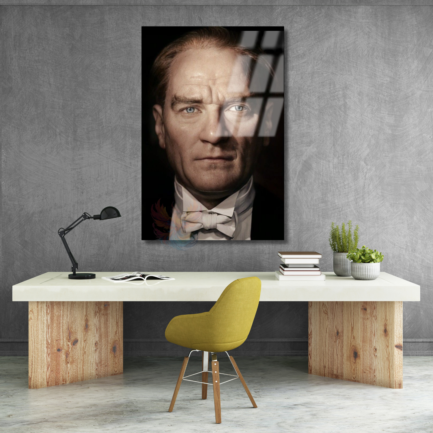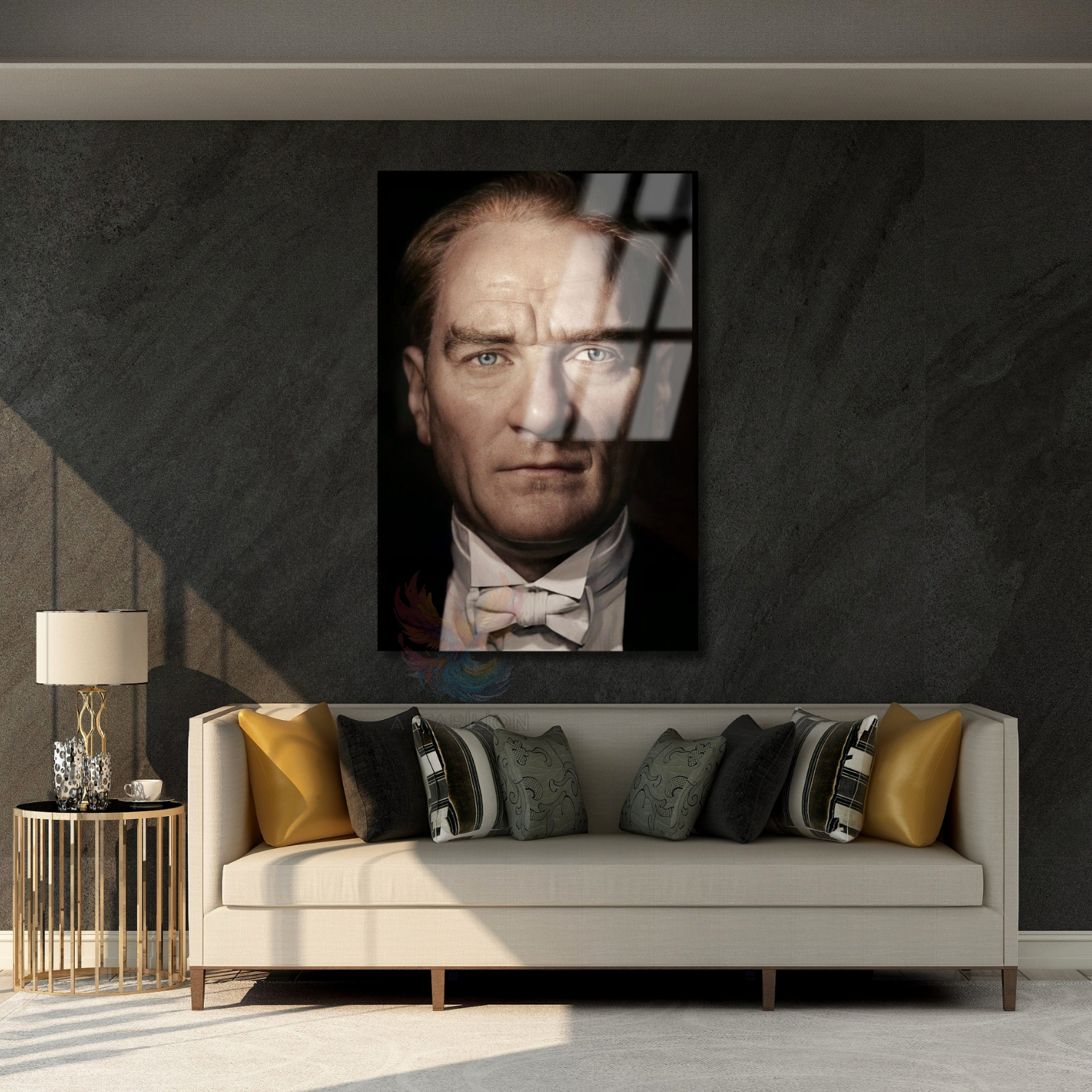 Yakın Çekim Atatürk Portresi Renkli Cam Tablo Dikey Duvar Tablosu