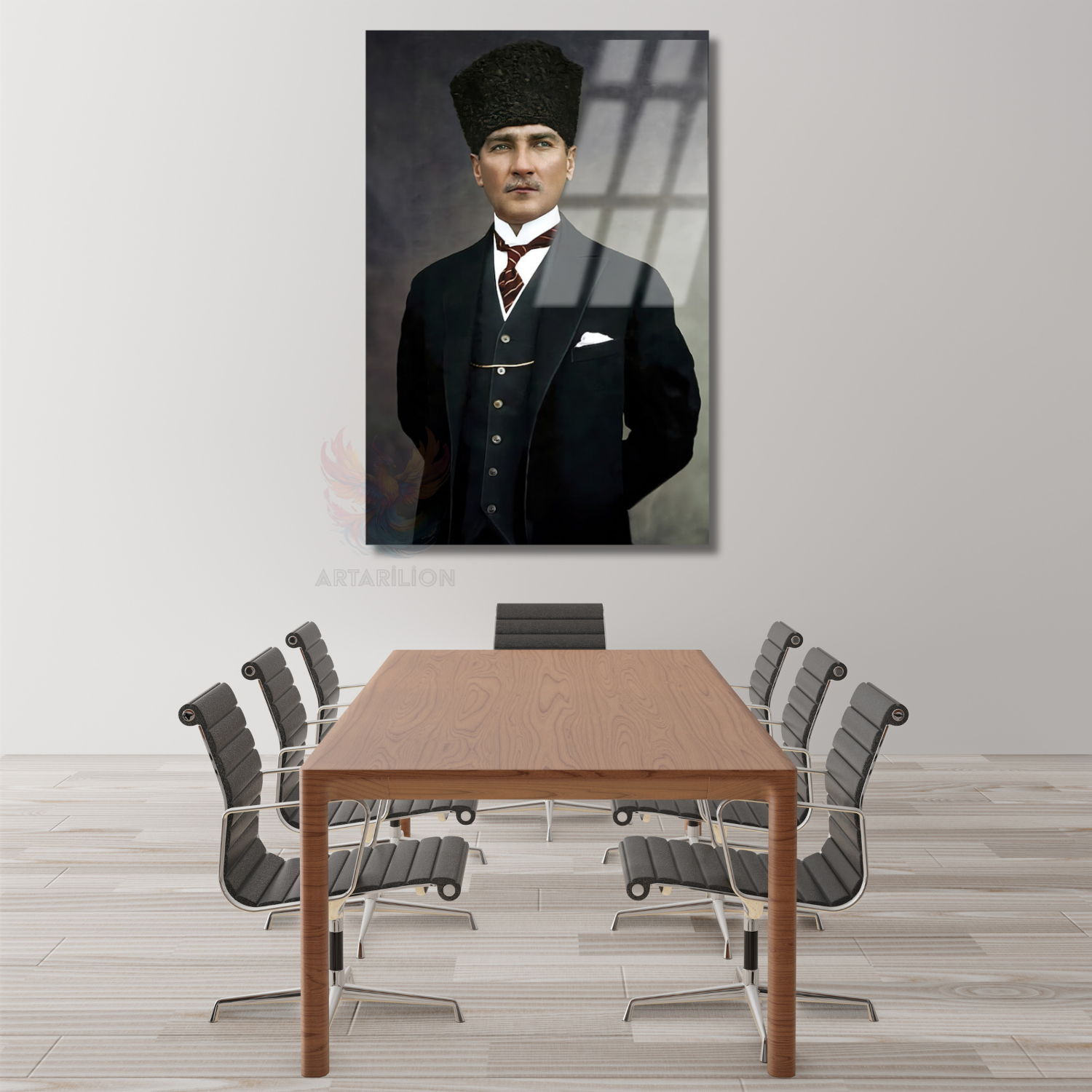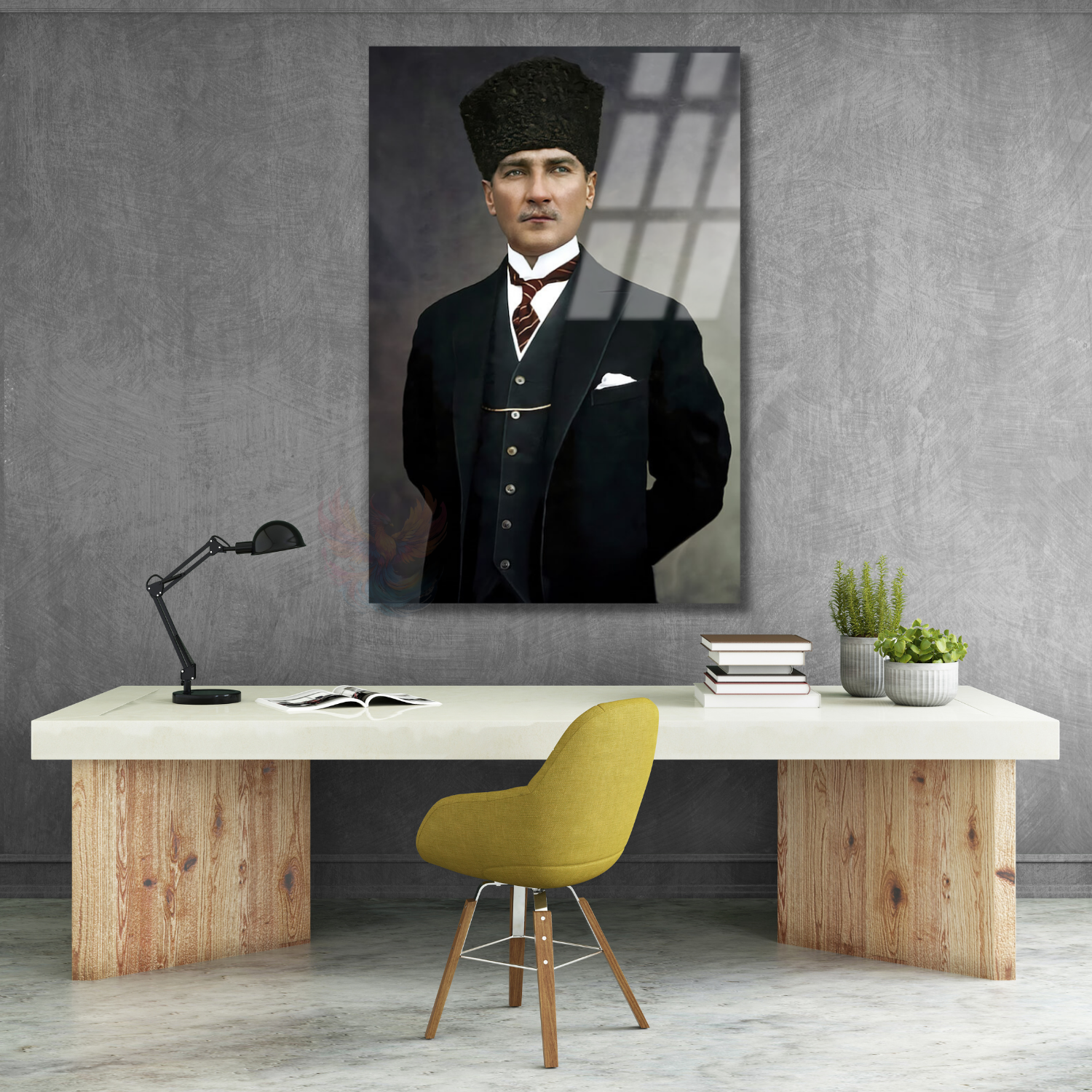Mustafa Kemal Atatürk Renkli Cam Tablo Dikey Duvar Tablosu Atatürk Tablosu