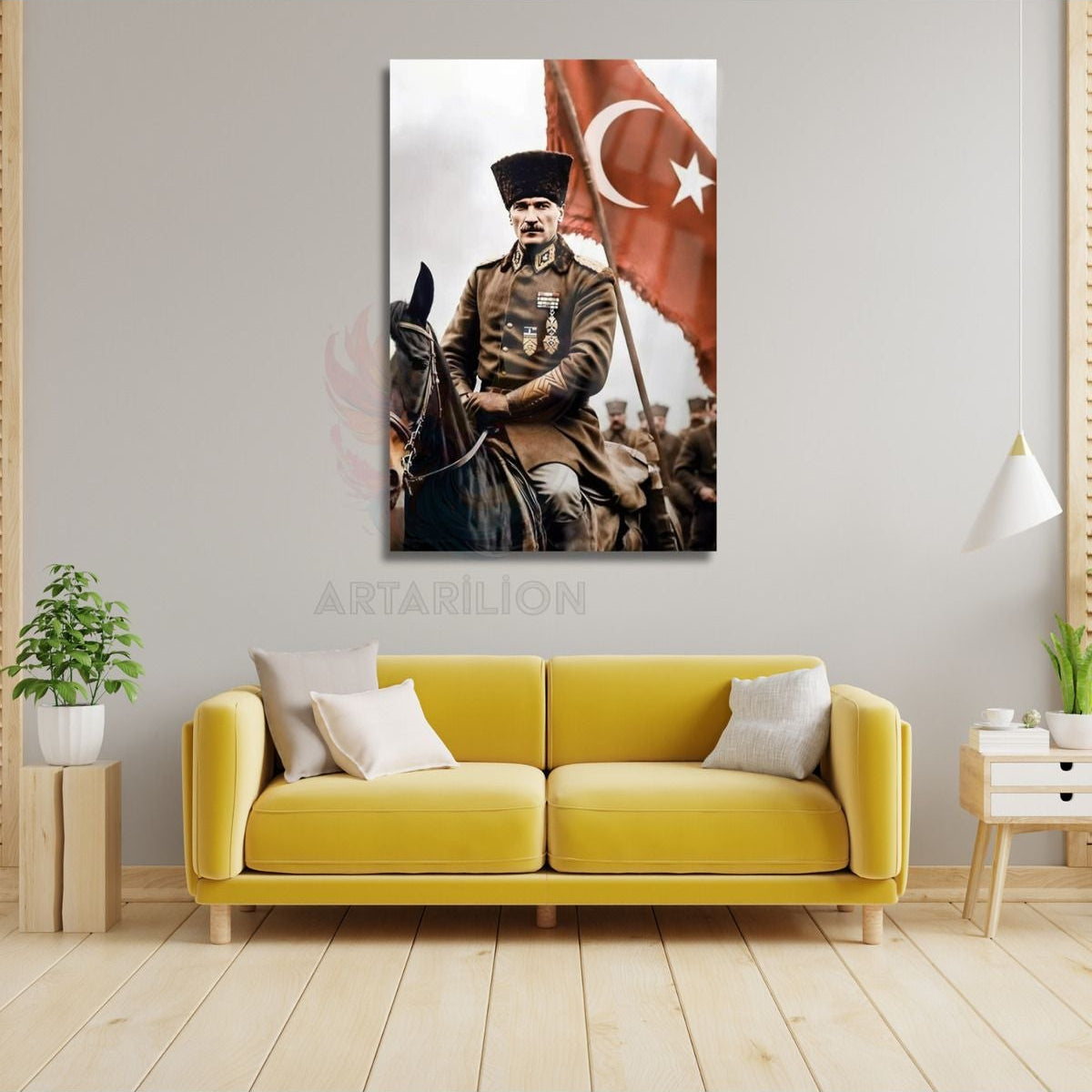 Atatürk ve Türk Bayrağı Kırılmaz Cam Tablo Dijital HD Baskı Tablo Duvar Dekor