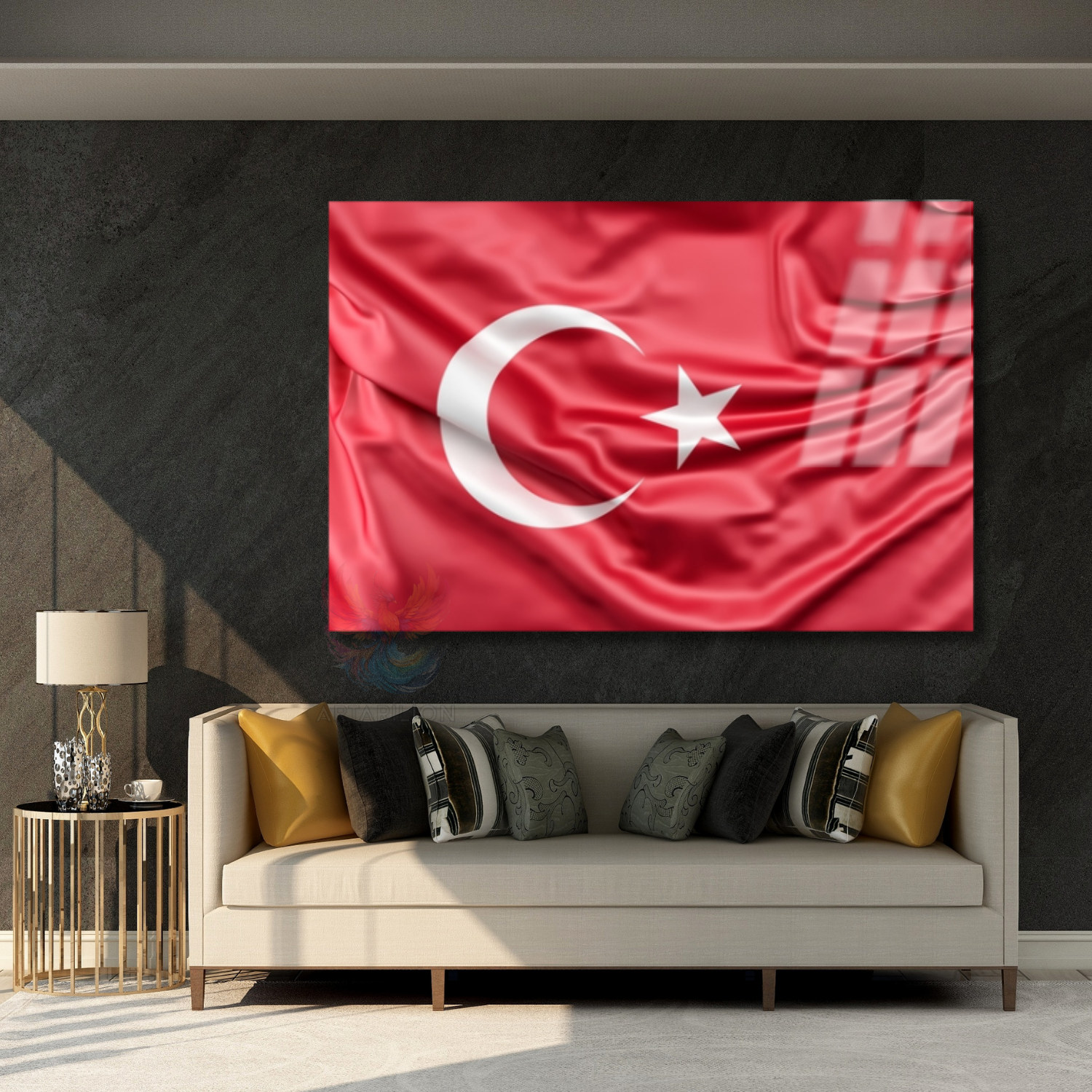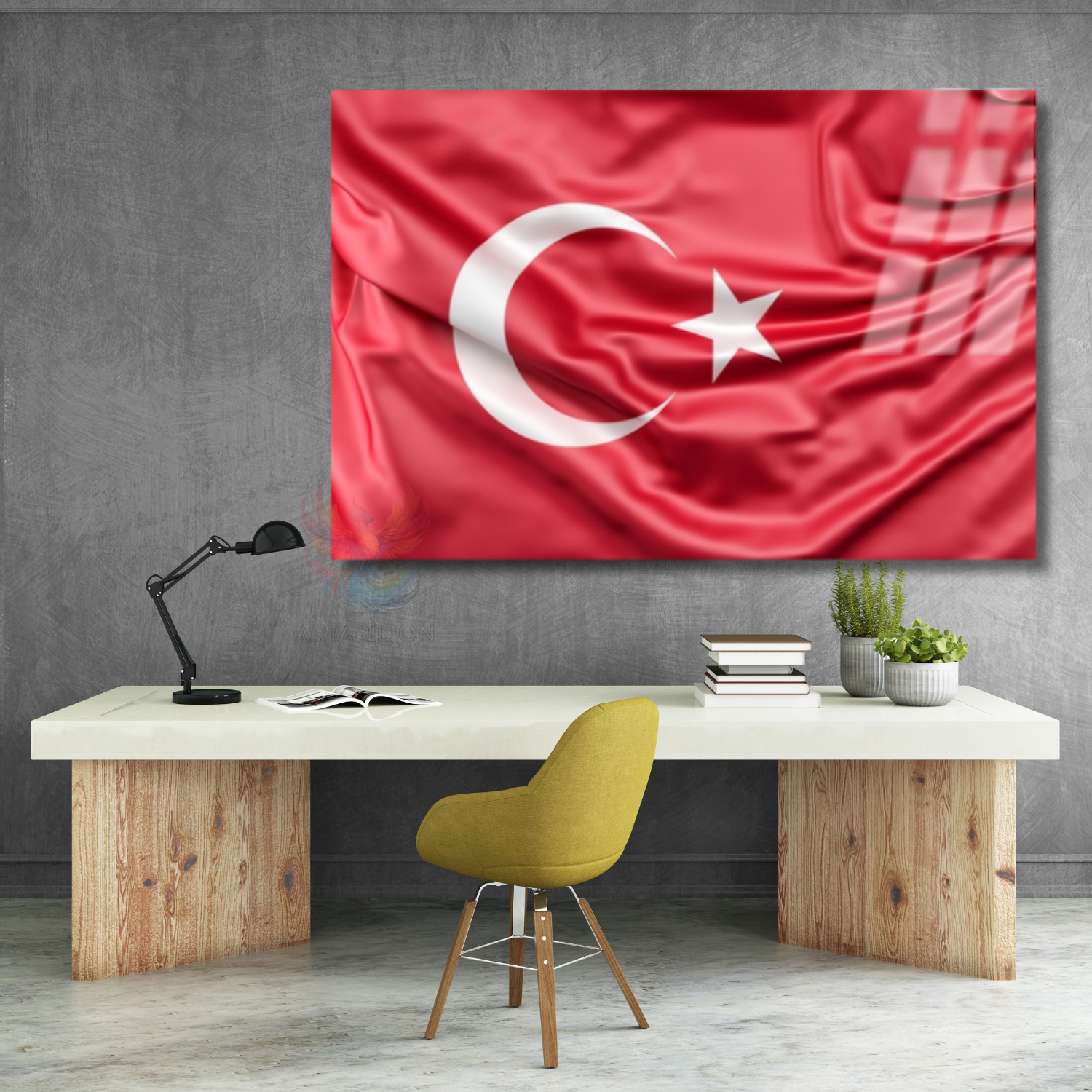 Ay Yıldız Türk Bayrağı Cam Tablo Yatay Duvar Tablosu Ev Ofis Okul Tablosu