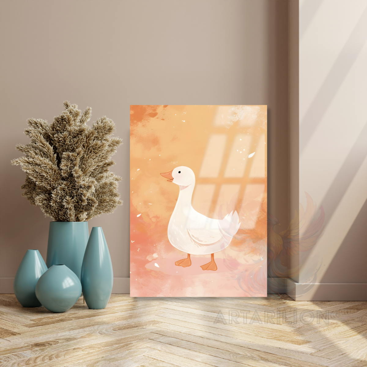 Kırılmaz Cam Tablo Sevimli Beyaz Ördek Tablo Çocuk Odası Tablosu