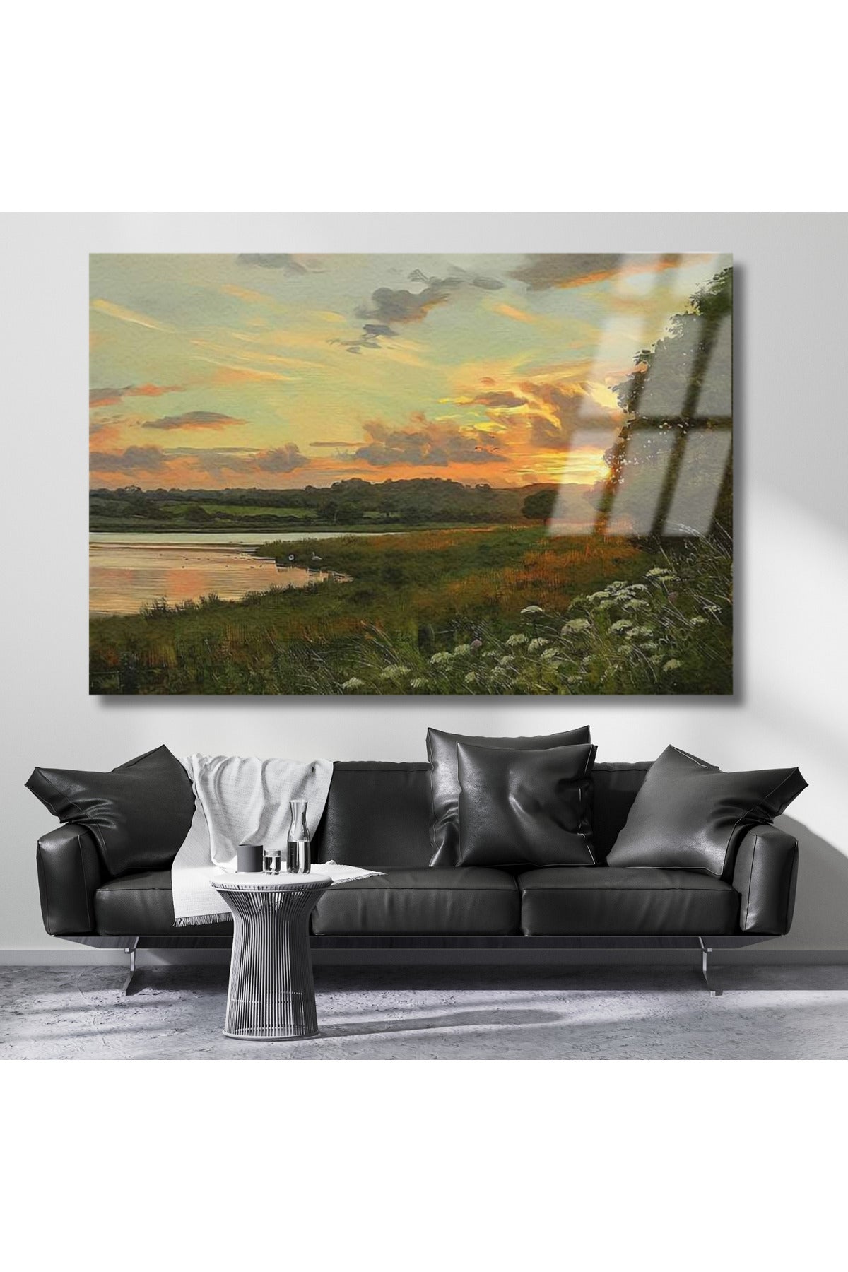 Yağlı Boya Görünümlü Güneşin Batışı Kırılmaz Cam Tablo Manzara Tablosu Salon Tablosu