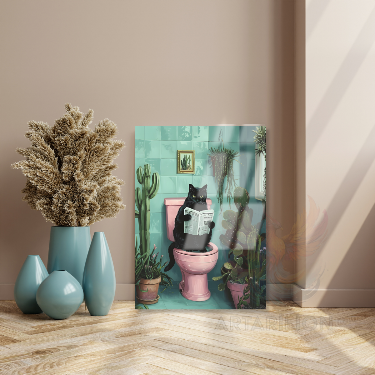 Kırılmaz Cam Tablo Gazete Okuyan Siyah Kedi Kırılmaz Cam Tablo Yeni Ev Hediyesi
