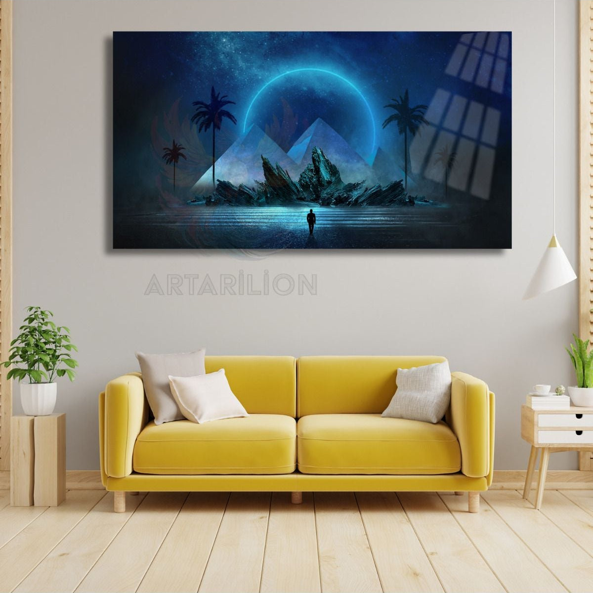 Piramit Manzaralı Kırılmaz Cam Baskı Tablo Salon Tablosu Dijital Baskı Tablo
