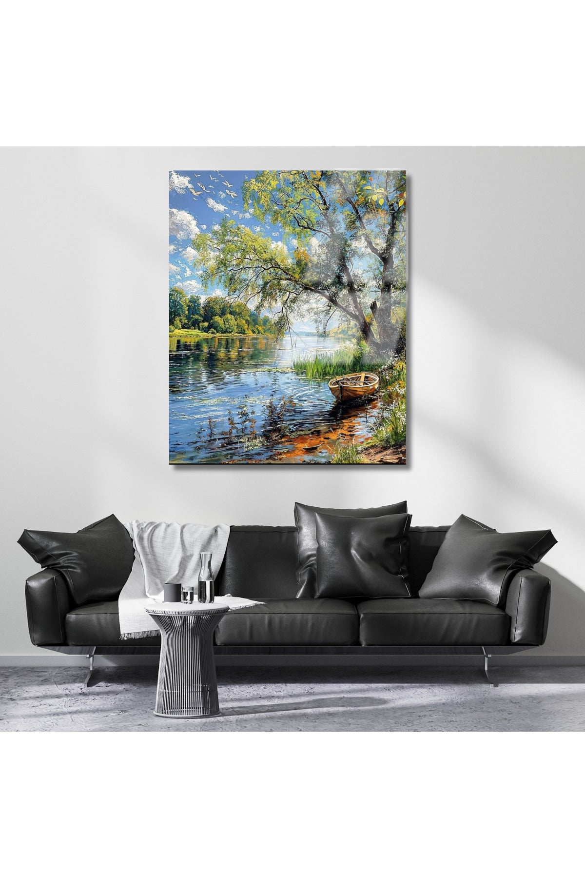 Göl ve Tekne Kırılmaz Cam Tablo Manzara Kırılmaz Cam Baskı Tablo Salon Tablosu