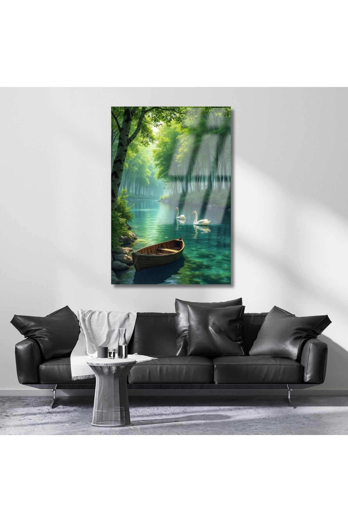 Nehirdeki Kuğular Kırılmaz Cam Tablo Manzara Tablosu Yeni Ev Hediyesi Ev Dekoru