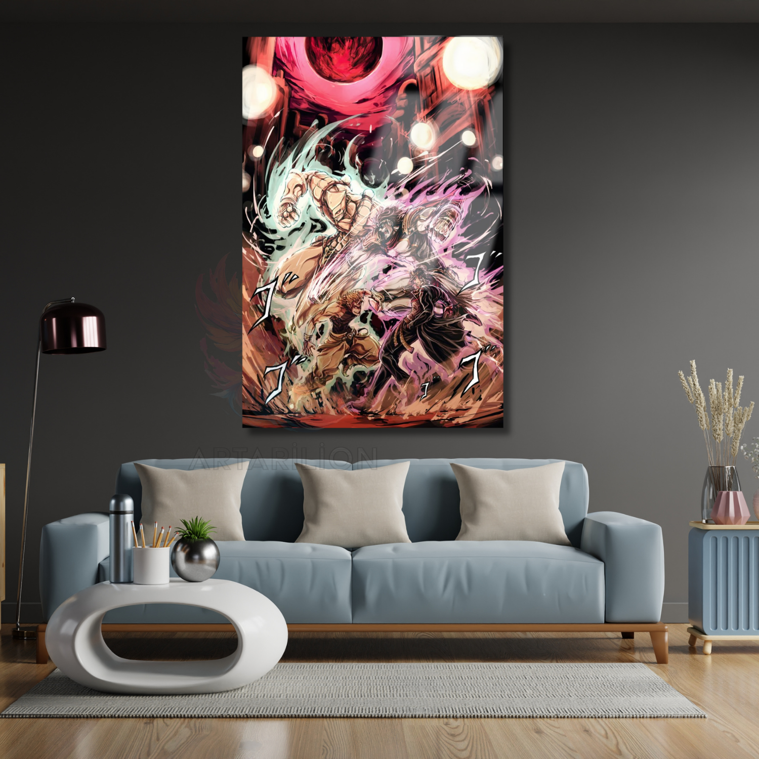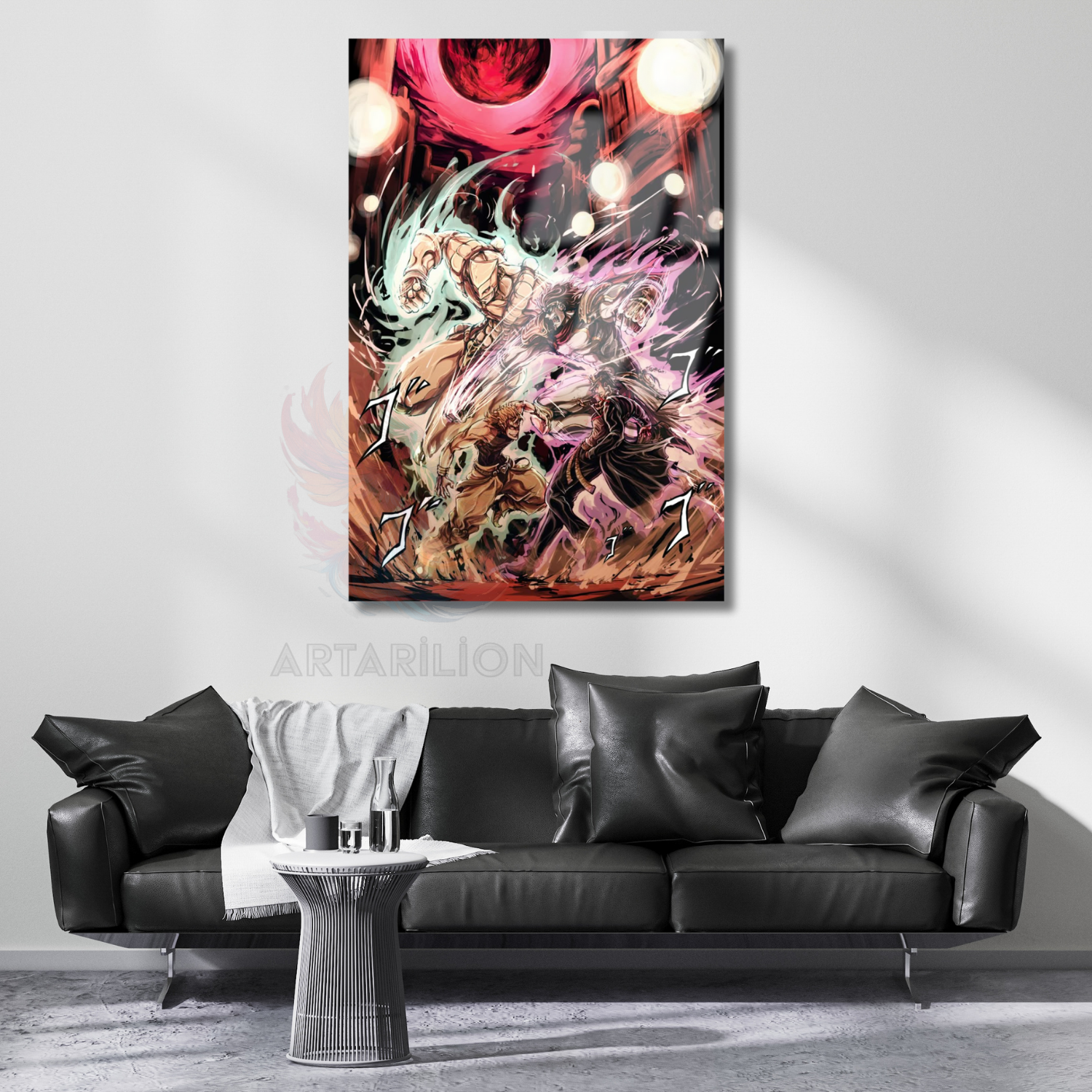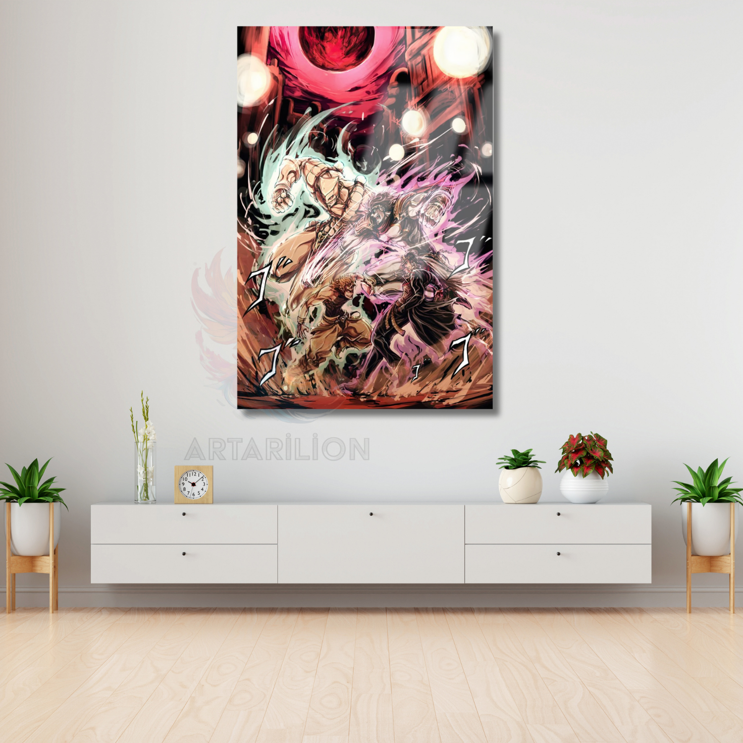 Cam Anime Tablosu Jojo Jotaro ve Dio Temalı Dijital Baskı Cam Tablo Oyuncu Odası Tablosu