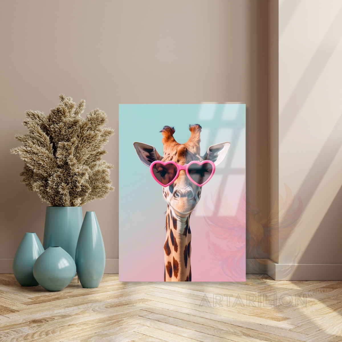 Kalpli Gözlüklü Zürafa Kırılmaz Cam Tablo Salon Dekoru Yeni Ev Hediyesi