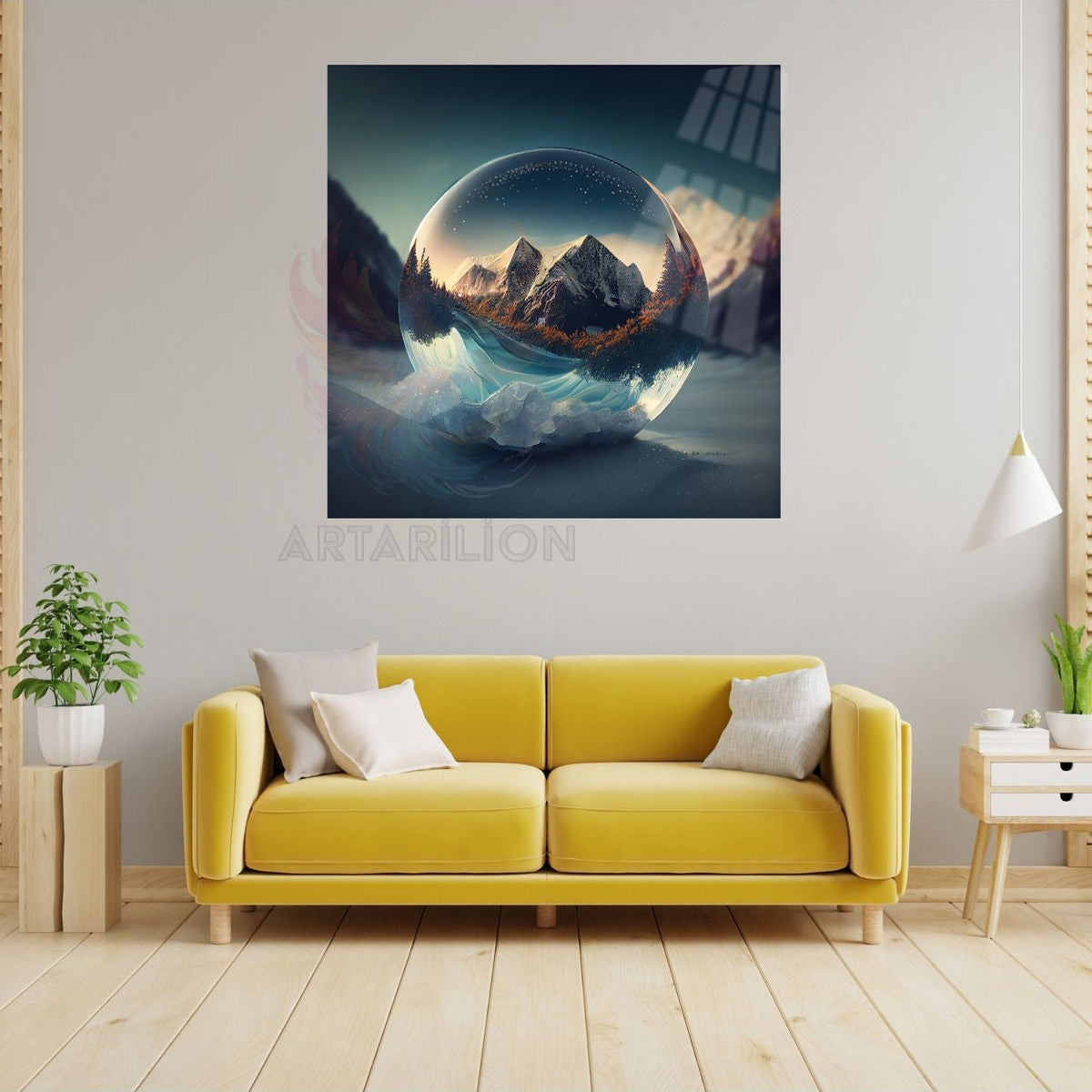 Kar Üstündeki Damla Kırılmaz Cam Manzara Tablosu Oturma Odası Tablosu Şık Tasarım Tablo