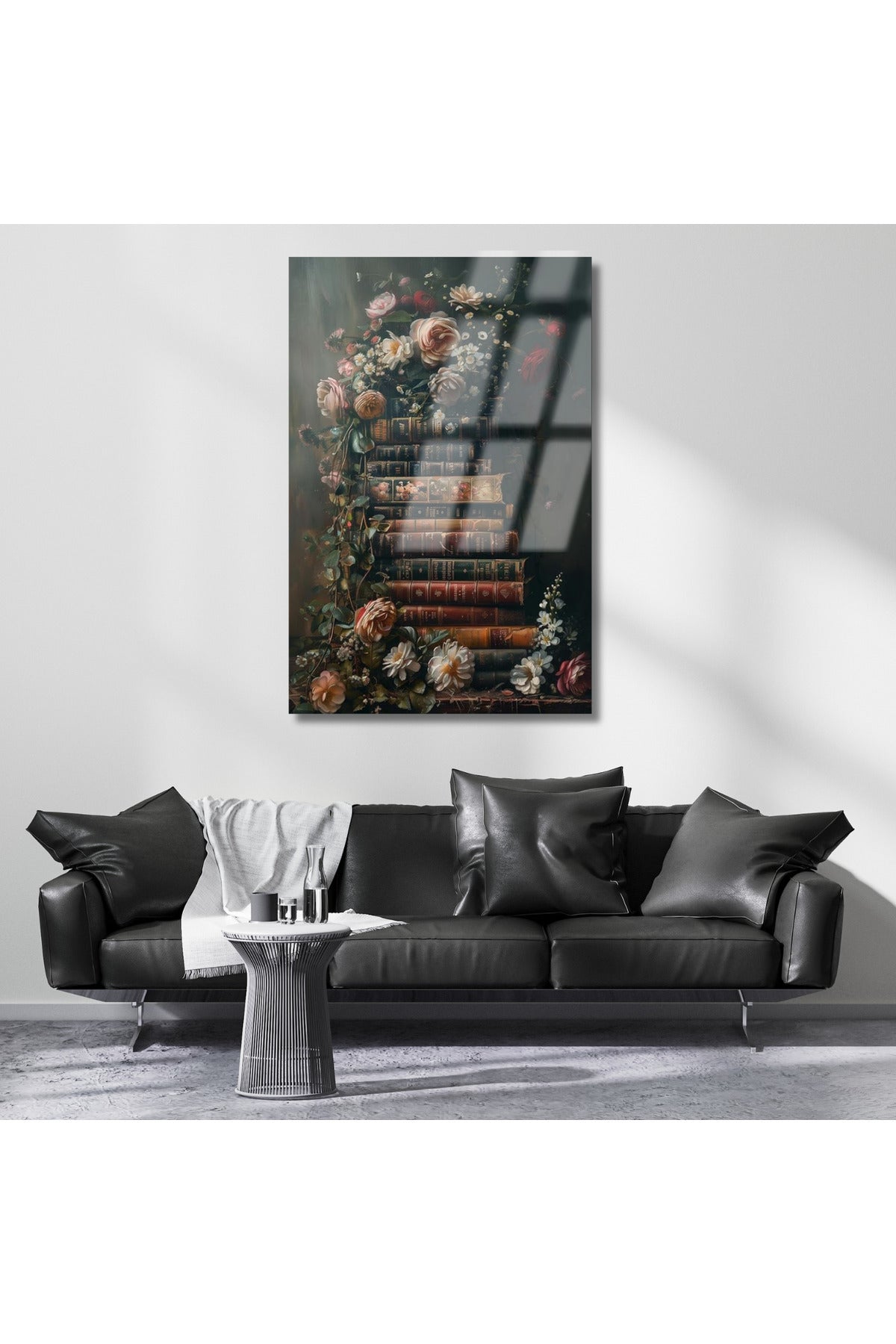 Çiçekler ve Kitaplar Kırılmaz Cam Dijital Baskı Duvar Tablosu Yeni Ev Hediyesi