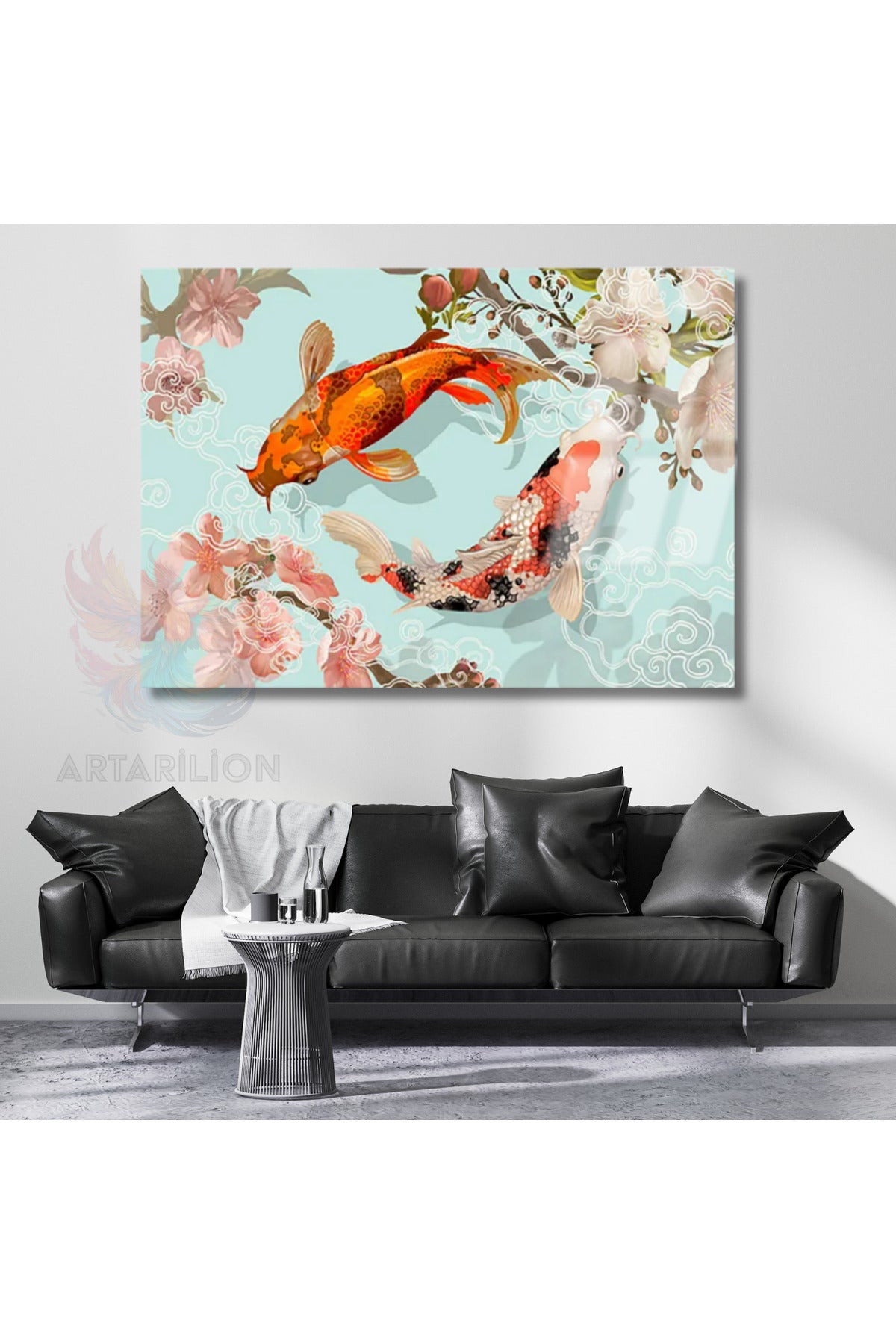Soyut Tasarım Koi Balıkları Kırılmaz Cam Tablo Japon Temalı Tablo Modeli