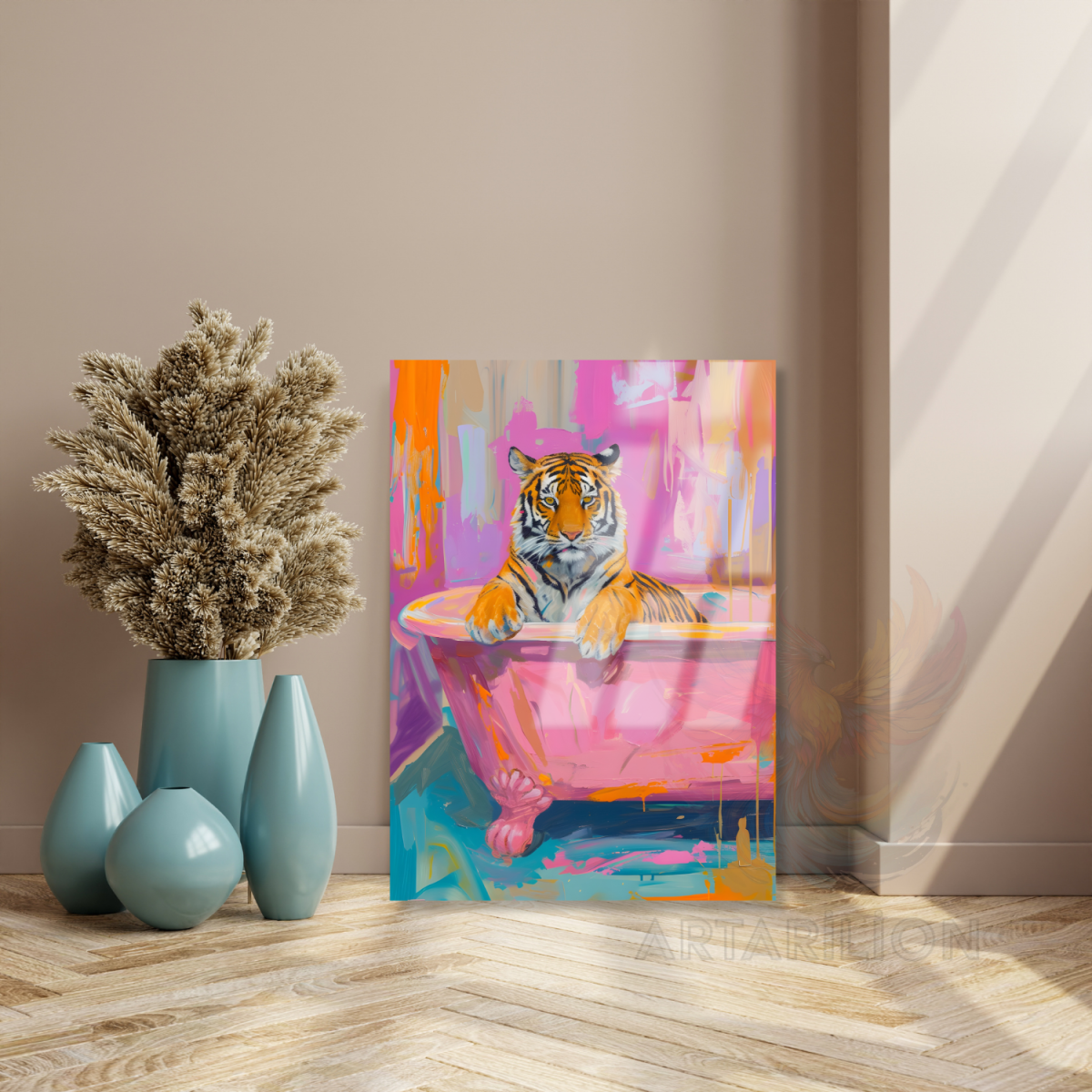 Kırılmaz Cam Tablo Küvetteki Kaplan Renkli Kırılmaz Cam Tablo Banyo Tablosu