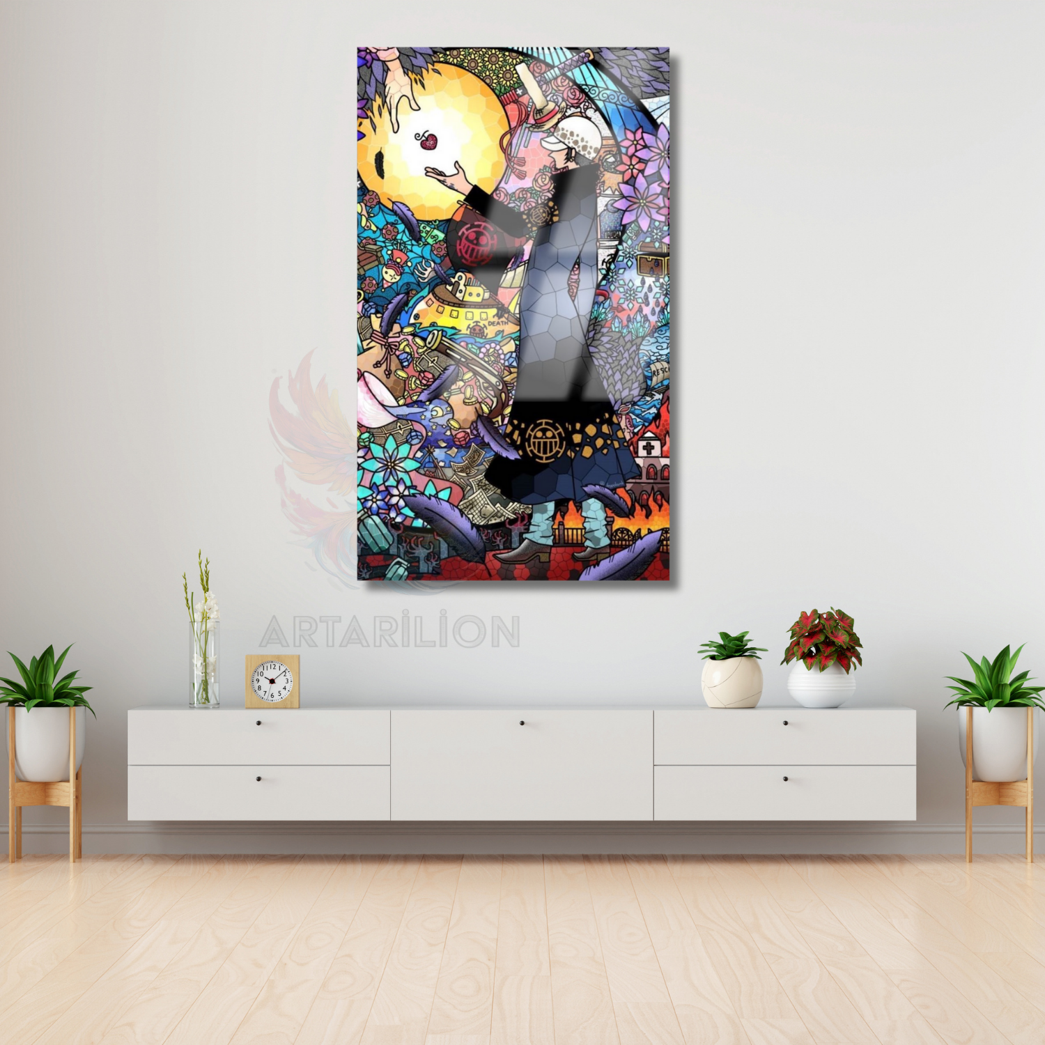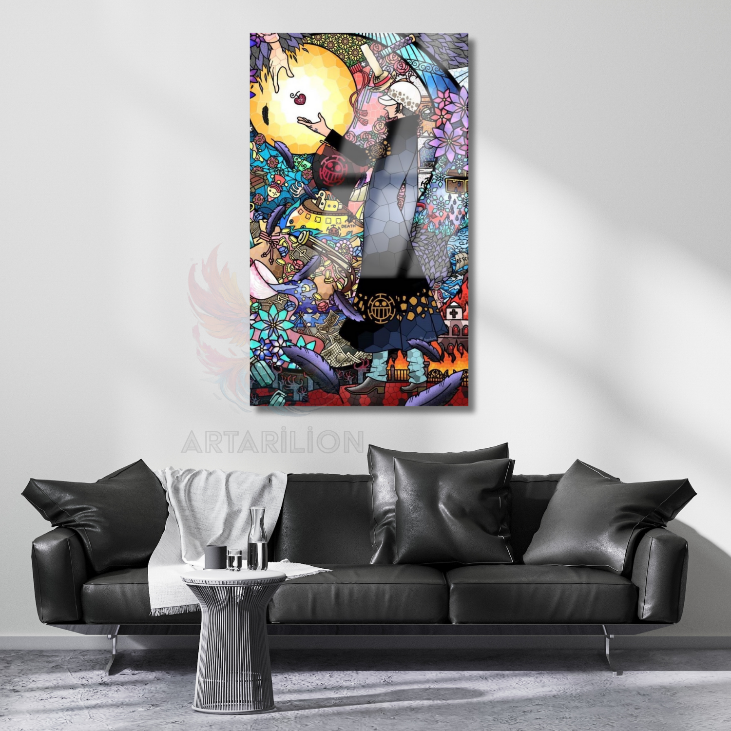 Cam Anime Tablosu Law One Piece Temalı Dijital Baskı Cam Tablo Oyuncu Odası Tablosu