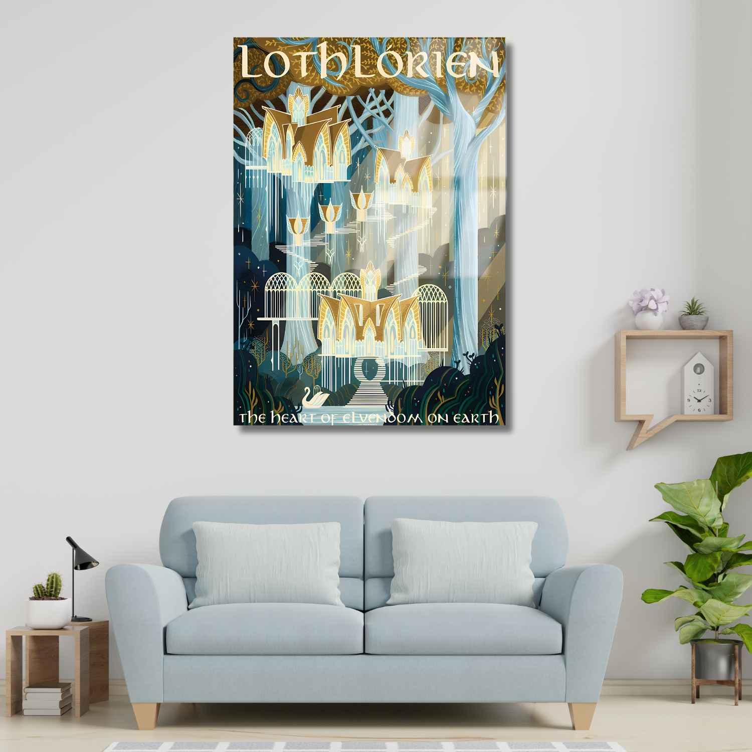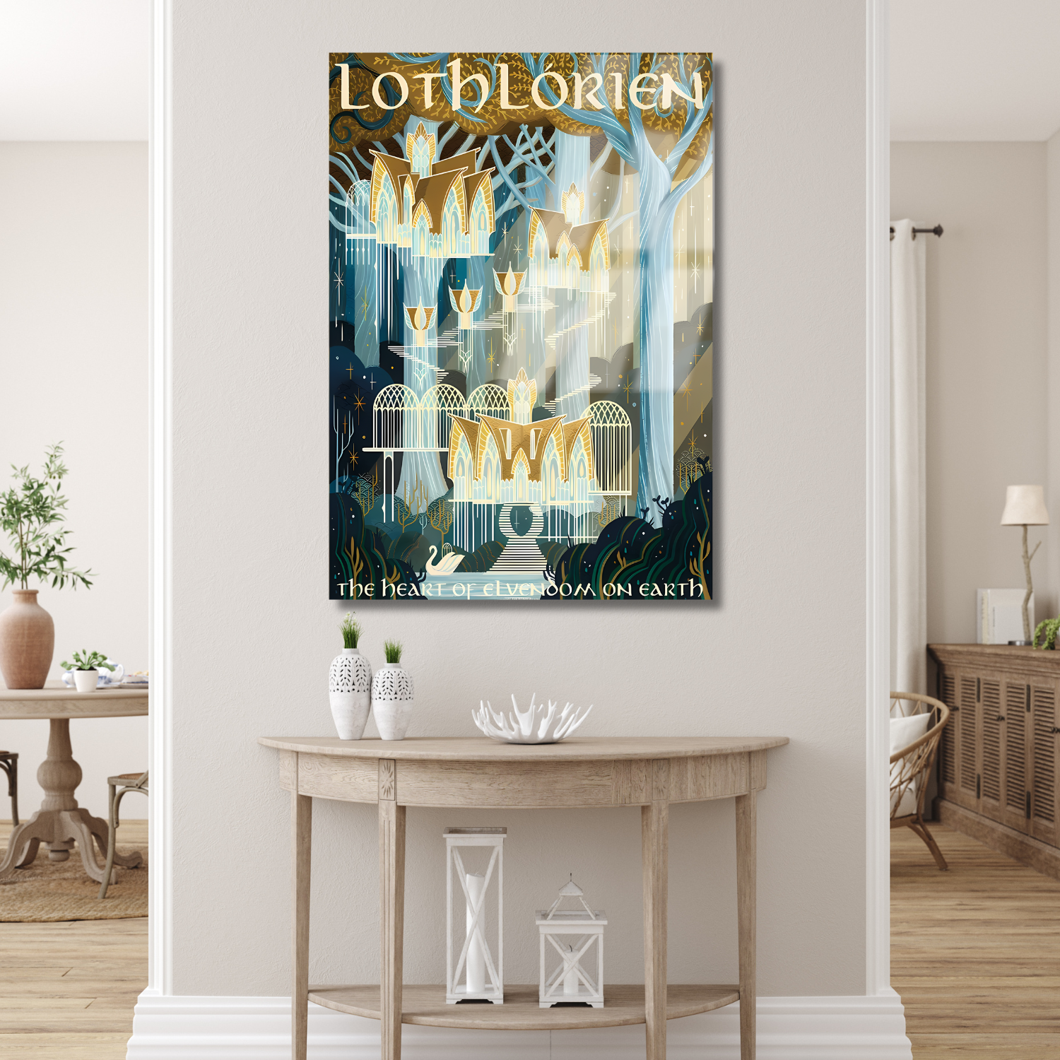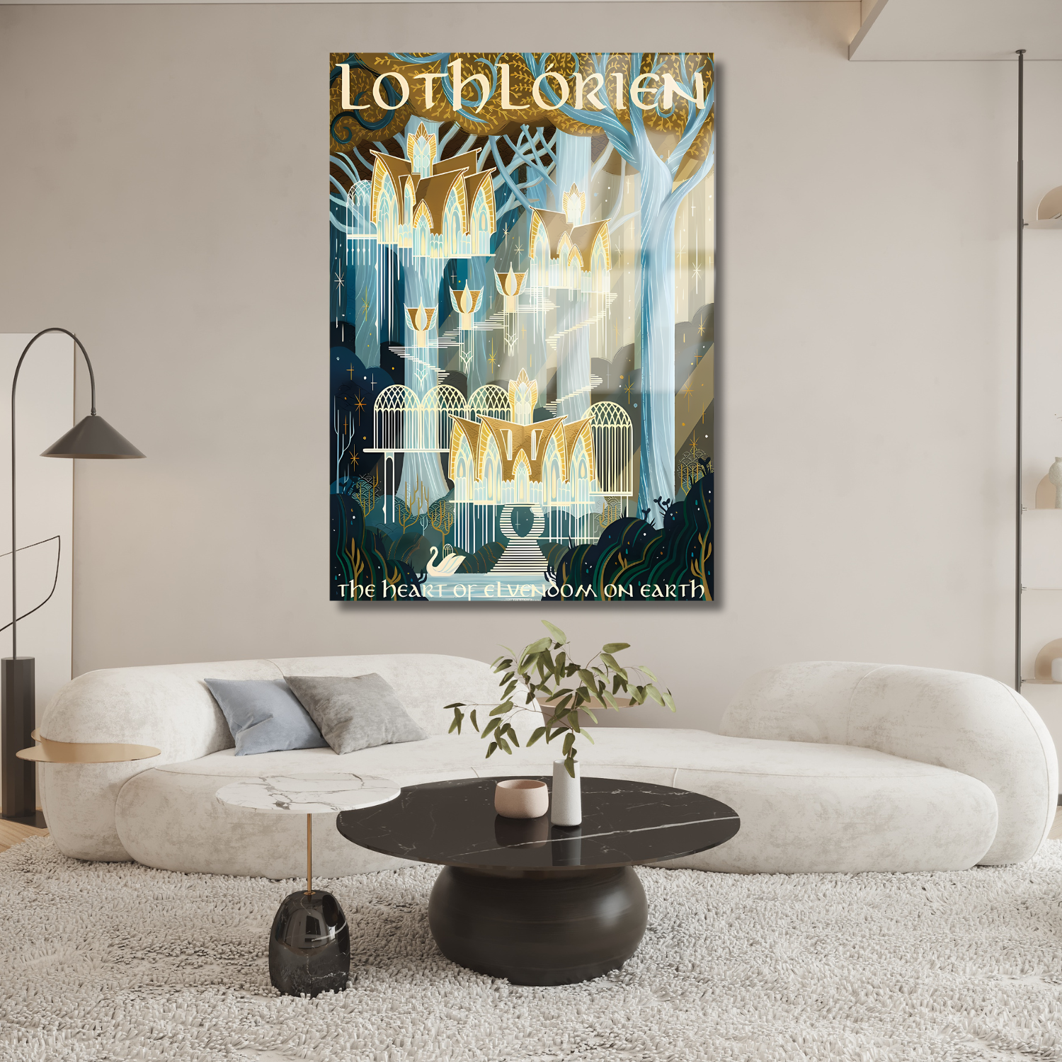 Yüzüklerin Efendisi Cam Loth-Lorien Dijital Baskı Kırılmaz Cam Tablo LOTR Cam Tablo Dizi Film