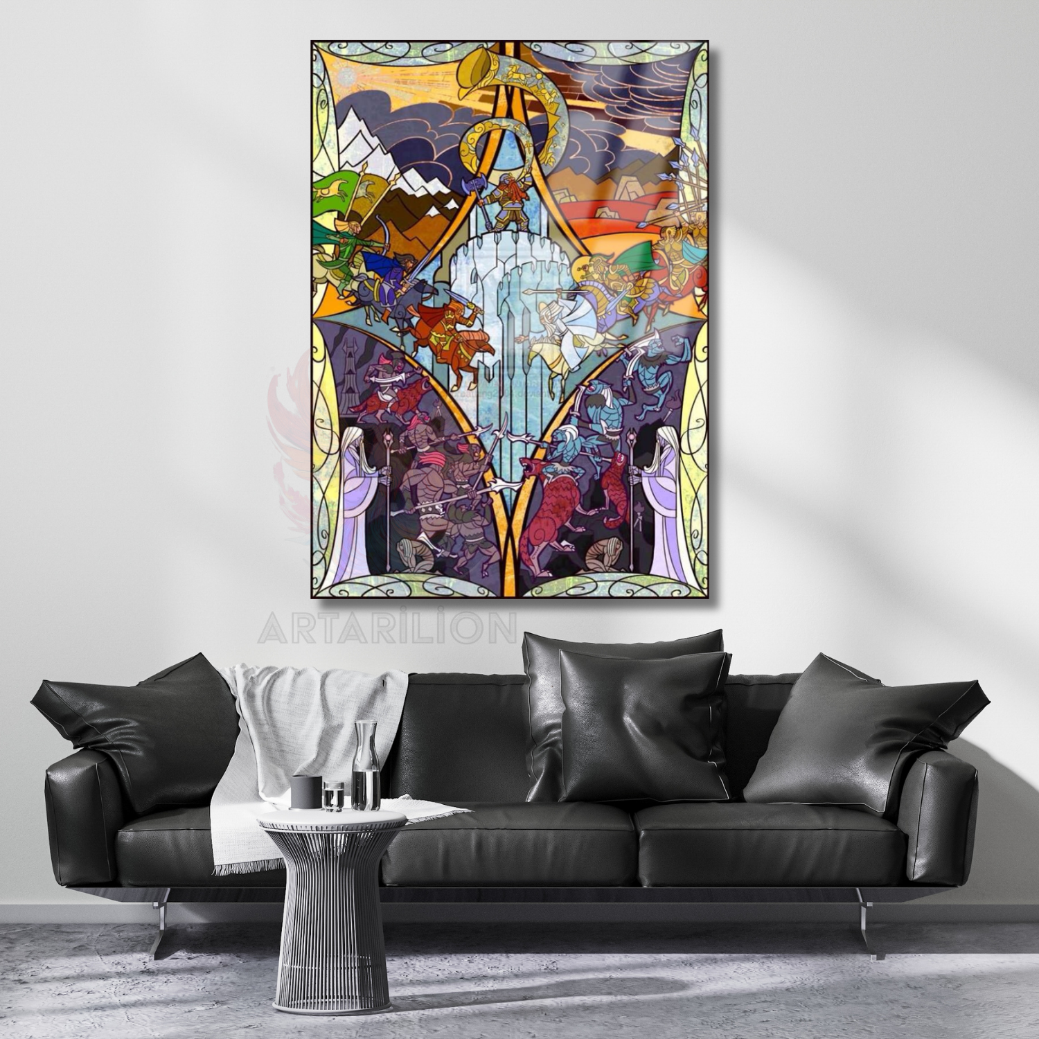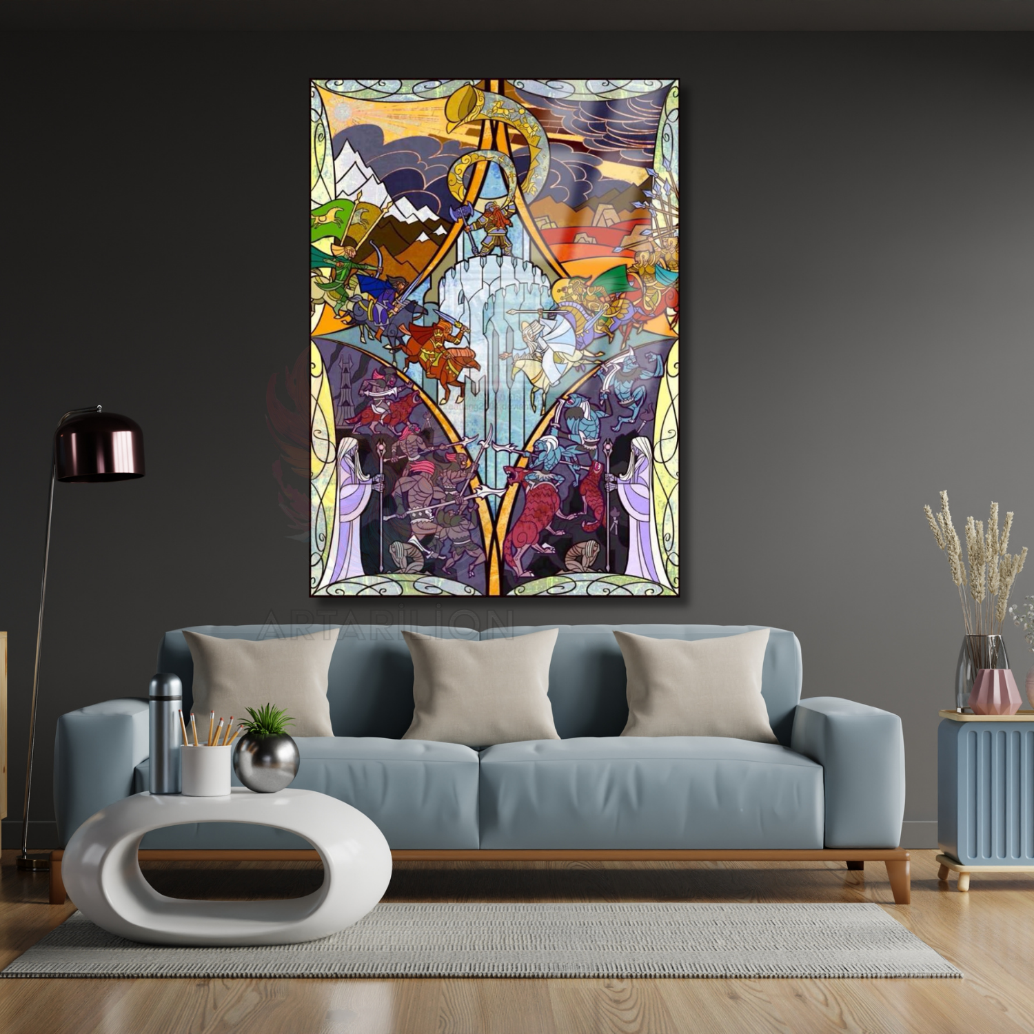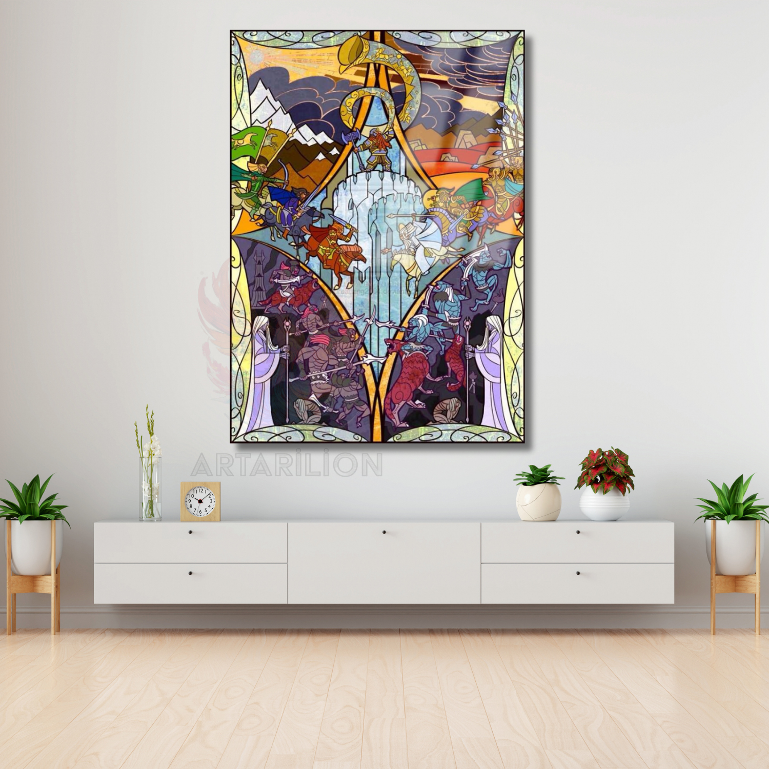 Cam Tablo Mozaik Görünümlü Yüzüklerin Efendisi Temalı Dijital Baskı Cam Tablo Oyuncu Odası Dizi Film Tablosu