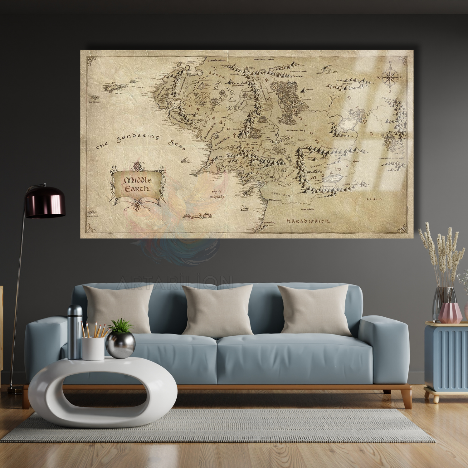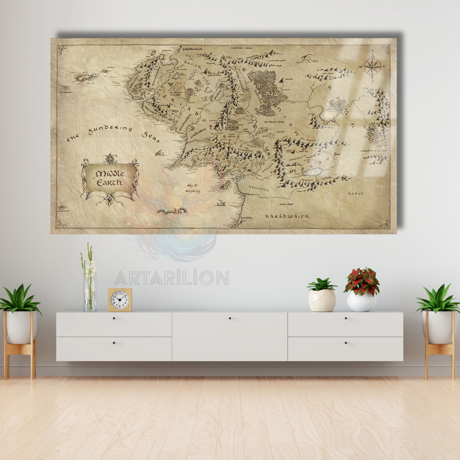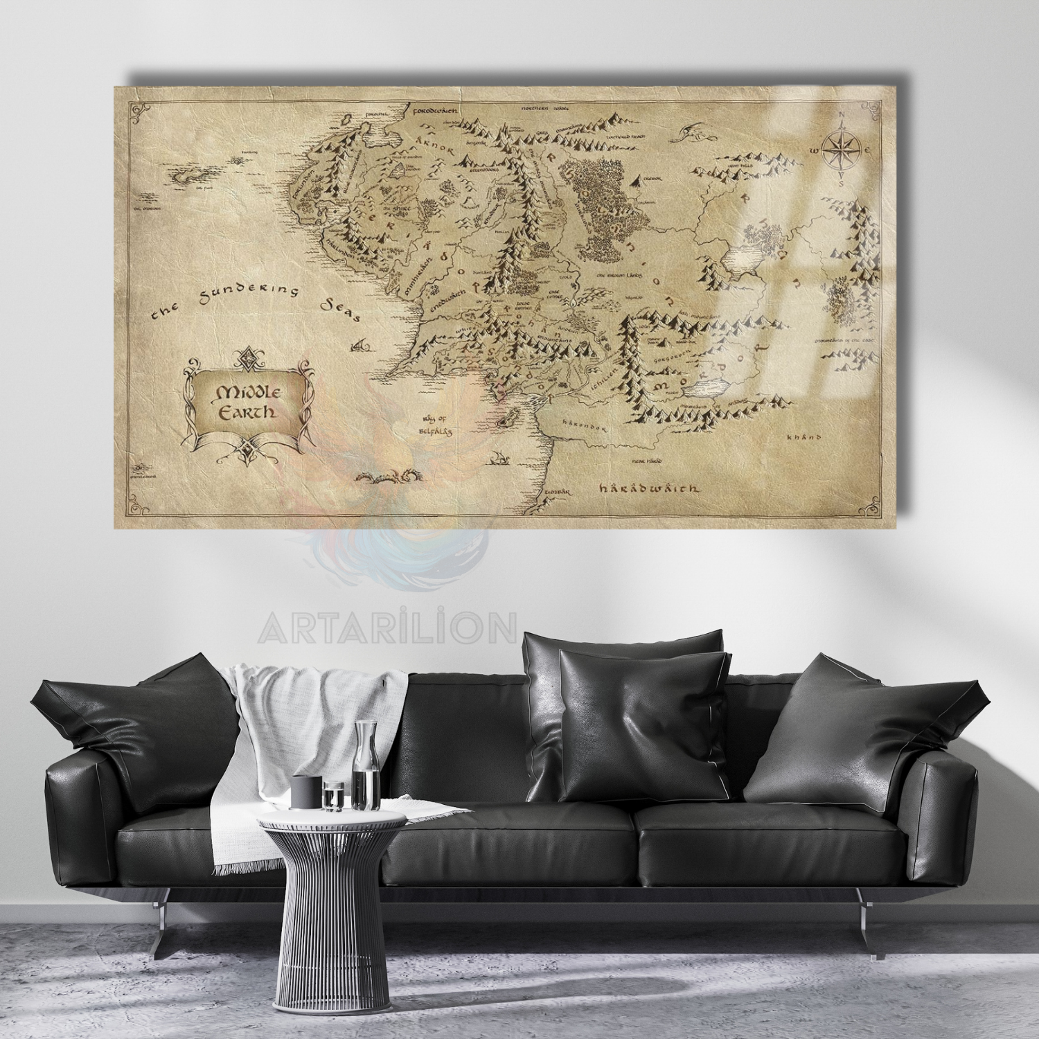 Cam Tablo Yüzüklerin Efendisi Haritası Dijital Baskı Cam Tablo Oyuncu Odası Dizi Film Tablosu