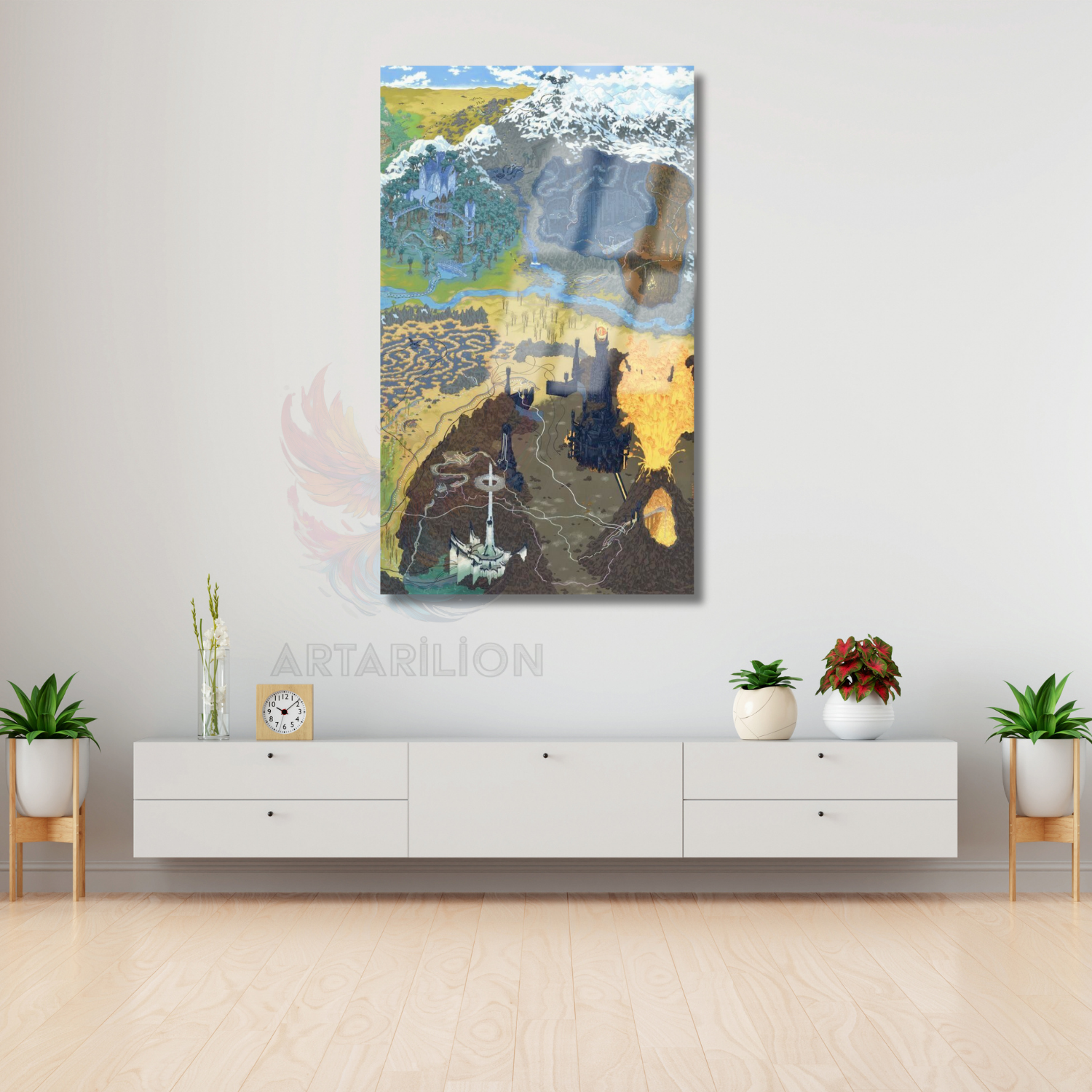 Cam Tablo Yüzüklerin Efendisi Haritası Dijital Baskı Cam Tablo Dizi Film Tablosu